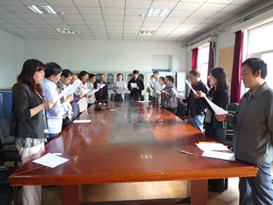 为迎接建党90周年,唱响“永远跟党走”的主旋律,唱响红色歌曲,传承红色文化,6月1日下午2:00至3:00,机械原理与设计教研室党支部及机械基础实验教学中心党支部的教师在会议室集体练唱红歌《歌唱祖国》,积极备战学院举办的庆祝建党90周年创先争优活动总结表彰会。《歌唱祖国》这首歌见证了新中国从贫穷走向富强的历程,唤起了大家的红色记忆,练唱过程中,每个人都饱含深情,并且一致决定会在保证课堂教学任务按时、保质完成的前提下积极投入到红歌练唱活动中,为党的90华诞献礼。此次积极练唱红歌,不仅代表全体教师对创先争优活动的大力支持,更展示了我们乐观开朗、积极向上的精神风貌,以及对党和祖国的热爱。