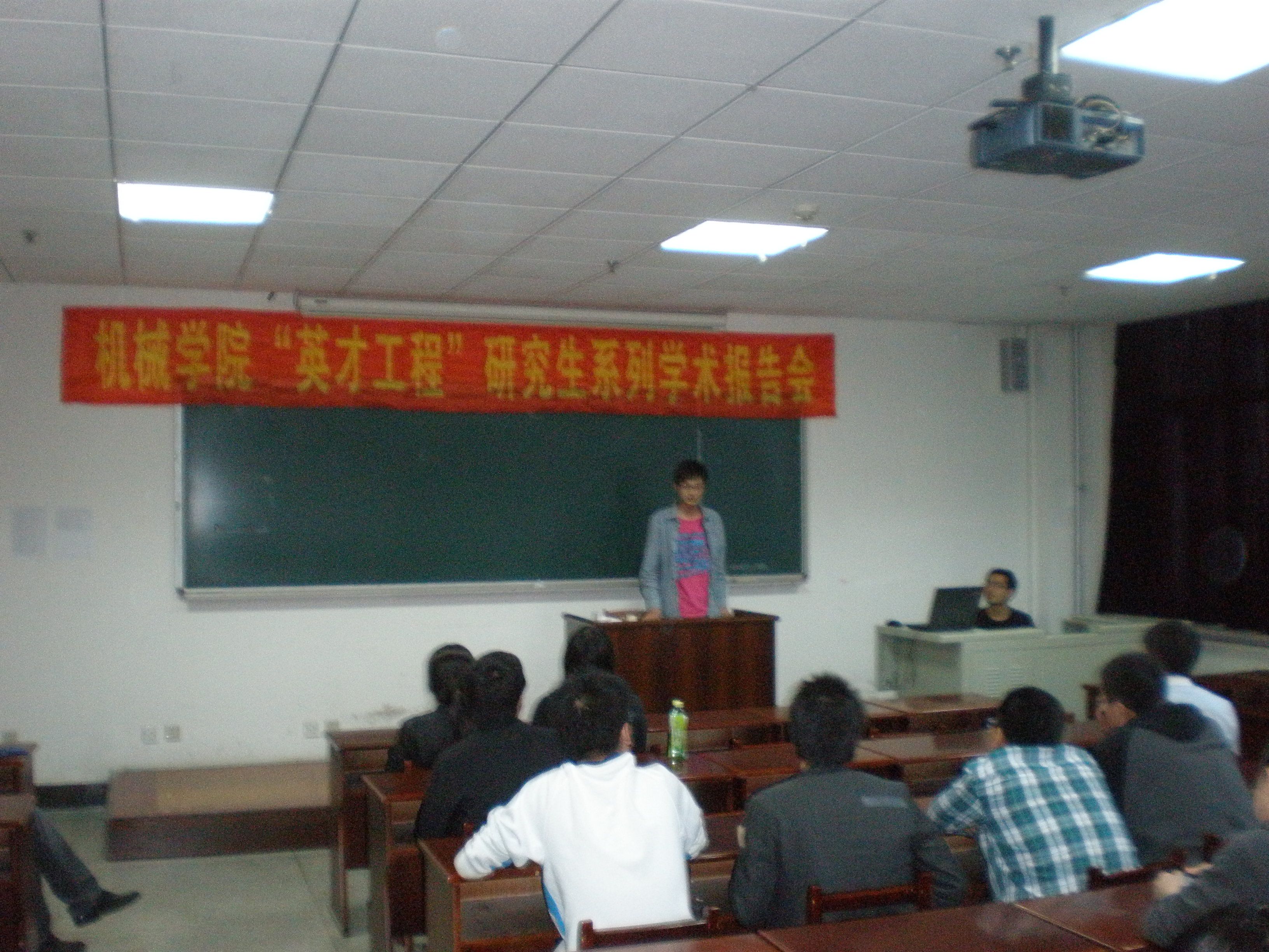 2012年5月24日晚6:30,机械学院英才工程系列学术活动之研究生学术报告会(第十四期)在逸夫机械材料馆529教室隆重举行。