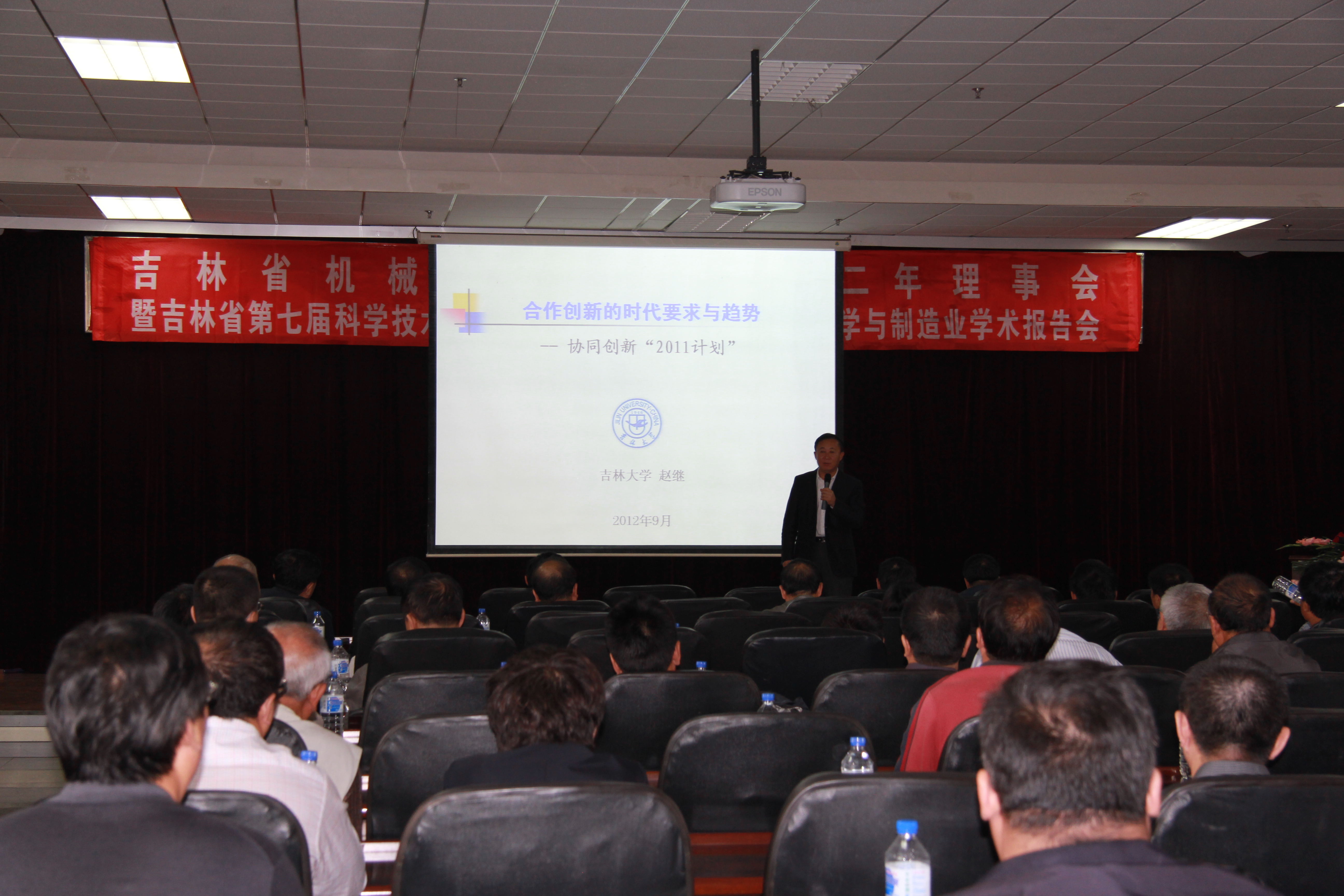 吉林大学常务副校长、吉林省机械工程学会第七届理事长赵继教授出席了本届年会并作了题为《合作创新的时代要求与趋势——协同创新“2011计划”》的报告。年会还邀请到了一汽技术中心工艺部部长孙凤池研究员作题为《汽车制造中热点工艺问题》的报告;长春轨道客车股份有限公司总工艺师王春生研究员作题为《轨道客车发展现状及车体制造技术》的报告;长春禹衡光学有限公司董事长兼总经理林长友研究员作题为《光学仪器与光栅编码器发展现状与展望》的报告。