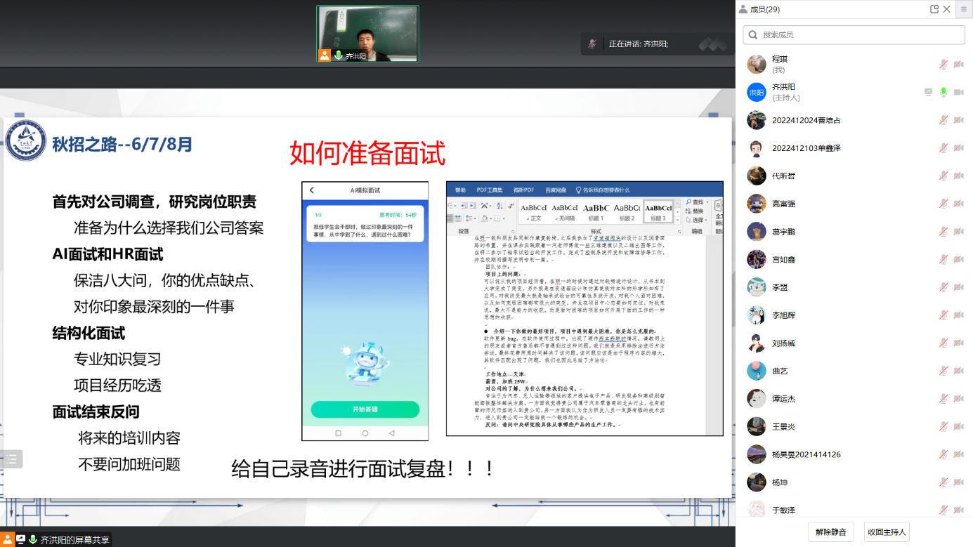 研究生工作办公室组织的“以梦为马,勇往‘职’前”就业信息分享会第二期通过腾讯会议的方式线上召开,由研究生会成员程琪主持,各年级研究生代表参加了本期活动。