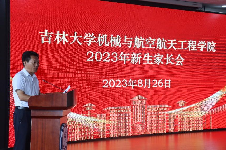 接下来,院长周晓勤教授对学校、学院整体情况进行介绍。周院长介绍了吉林大学整体情况,同时对学院新生录取情况、学科建设、人才队伍、学生培养及发展等做详细介绍,尤其针对家长们普遍关心的问题、家校如何协同助力学生成长成才等进行了说明。他希望家长与学校紧密配合,做学生成长成才的积极关注者、有效沟通者、守望相助者,共同担负起未来国家卓越工程人才培养的重任。