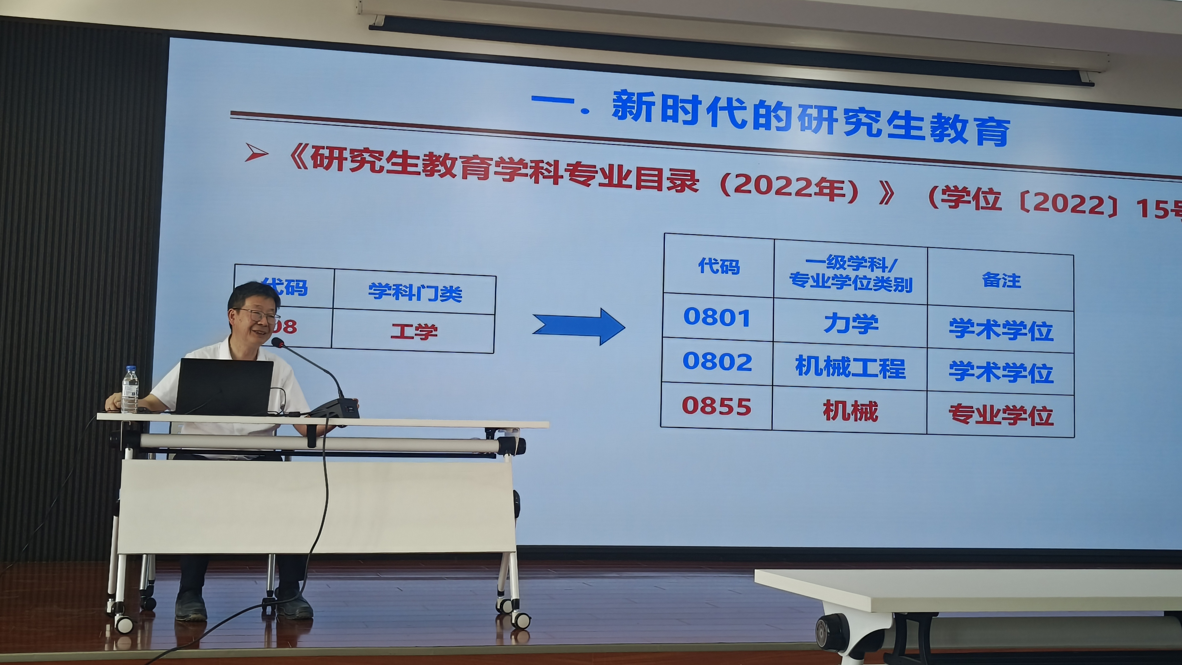 9月13日下午,学院在机械馆八楼会议室举办“开学第一课”活动,院长周晓勤为全体2023级研究生讲授思政课,活动由研究生辅导员曲艺主持。