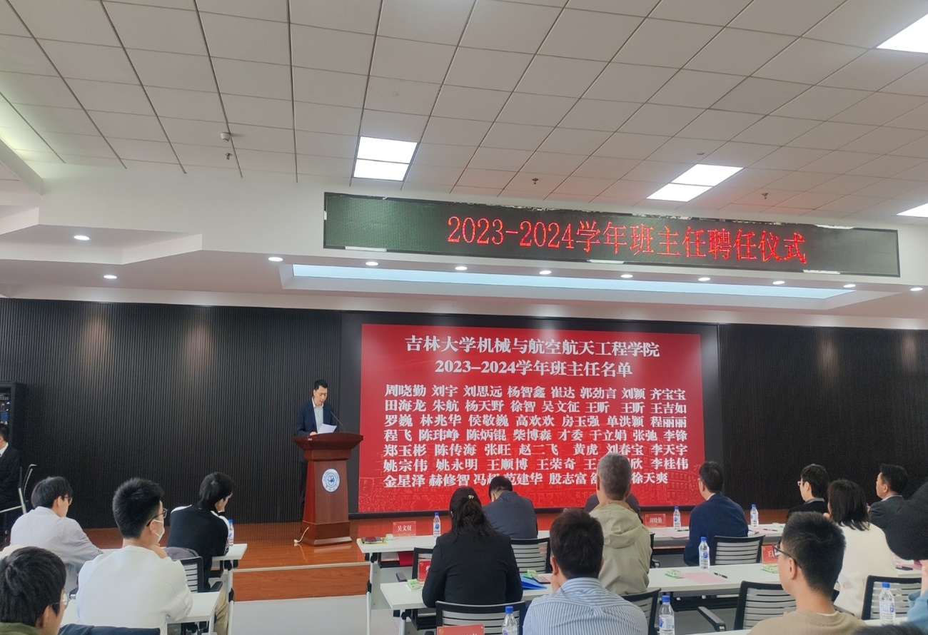 在机械馆八楼会议室举行了2023-2024学年班主任聘任仪式。学校教师教学发展中心主任王医术、学院院长周晓勤、党委书记郑福胜、党委副书记兼副院长柴媛、党委副书记丁连涛、副院长左文杰、工程训练中心副主任兼副院长刘鹏、机械基础教学中心副主任董景石、班主任代表、2023级学生代表和2022级学生代表参与本次活动。活动由副院长吴文征主持。