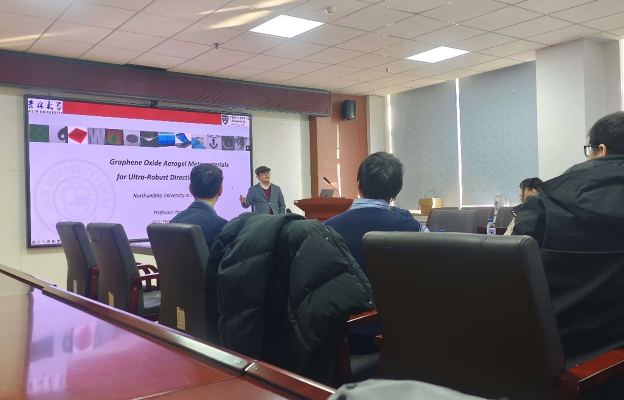 2025年1月16日早上,学院卓越论坛第20期于南岭校区机械材料馆529成功举办。英国诺桑比亚大学Ben Bin Xu教授做了题为“Graphene Oxide Aerogel Metamaterials for Ultra-robust Directional Sensing at Human-machine Interfaces”的学术报告。论坛由学院吴文征教授主持,学院教师和研究生40余人参加了论坛。