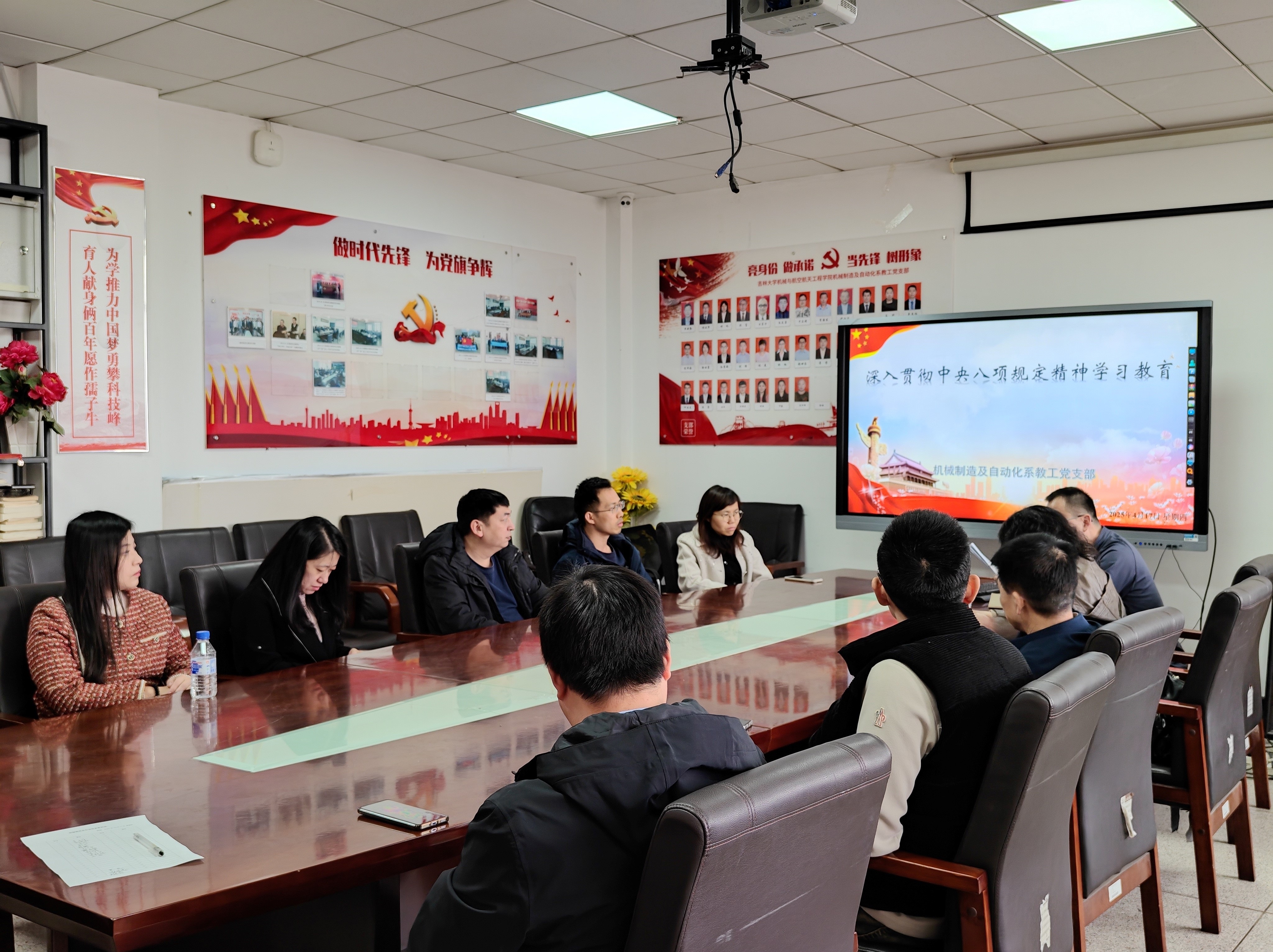 根据中央办公厅印发的《关于在全党开展深入贯彻中央八项规定精神学习教育的通知》,为贯彻落实党的二十届三中全会部署,巩固拓展学习贯彻习近平新时代中国特色社会主义思想主题教育成果,巩固深化党纪学习教育成果,锲而不舍落实中央八项规定精神,推进作风建设常态化长效化,机械制造及自动化教工党支部积极落实学校和丝瓜视频党委