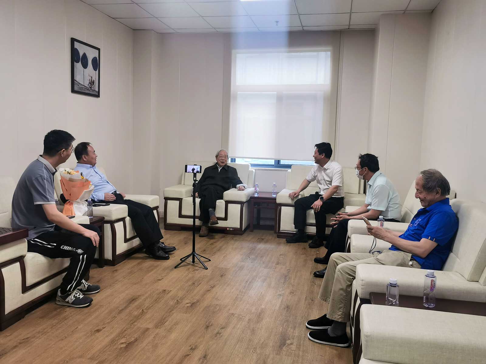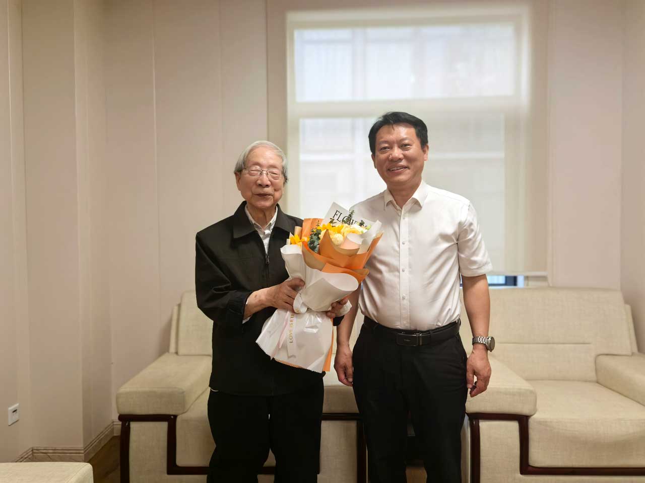 书记郑福胜、行政副院长马研、链传动研究所副院长朱国仁、航空航天工程研究院综合办公室主任李佳亮,赴上海老教授协会呵护家养老基地看望链条所首任所长、原机械系主任郑志峰先生。