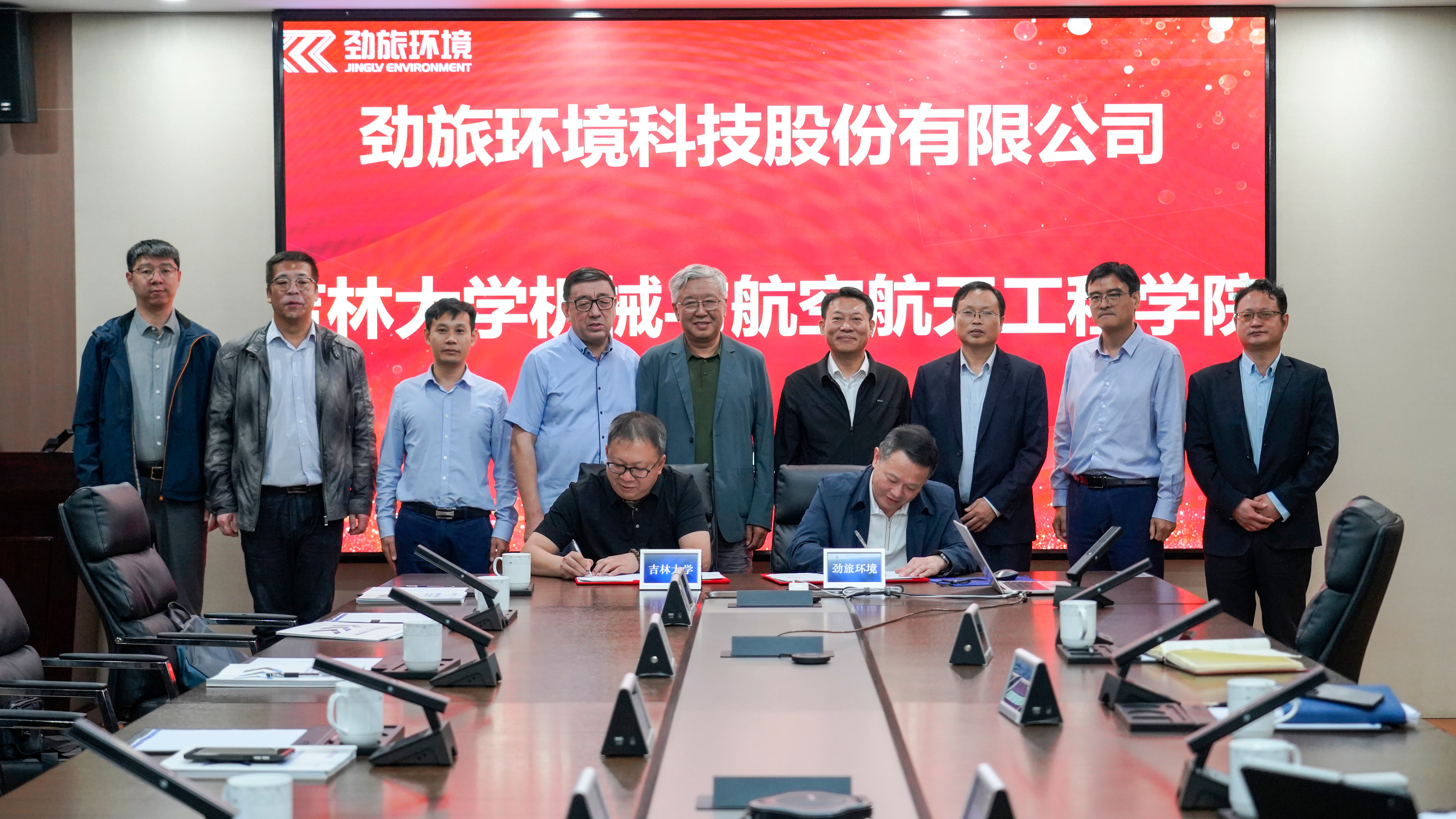 党委副书记丁连涛与劲旅环境执行董事长王传华分别代表双方签署《战略合作框架协议》。学院机械电子工程系教授刘昕晖、力学系主任周立明、航空航天工程研究院综合办主任李佳亮,劲旅环境董事会秘书杨晶晶、副总经理郑磊、装备事业部副总经理徐志汉共同见证签约。