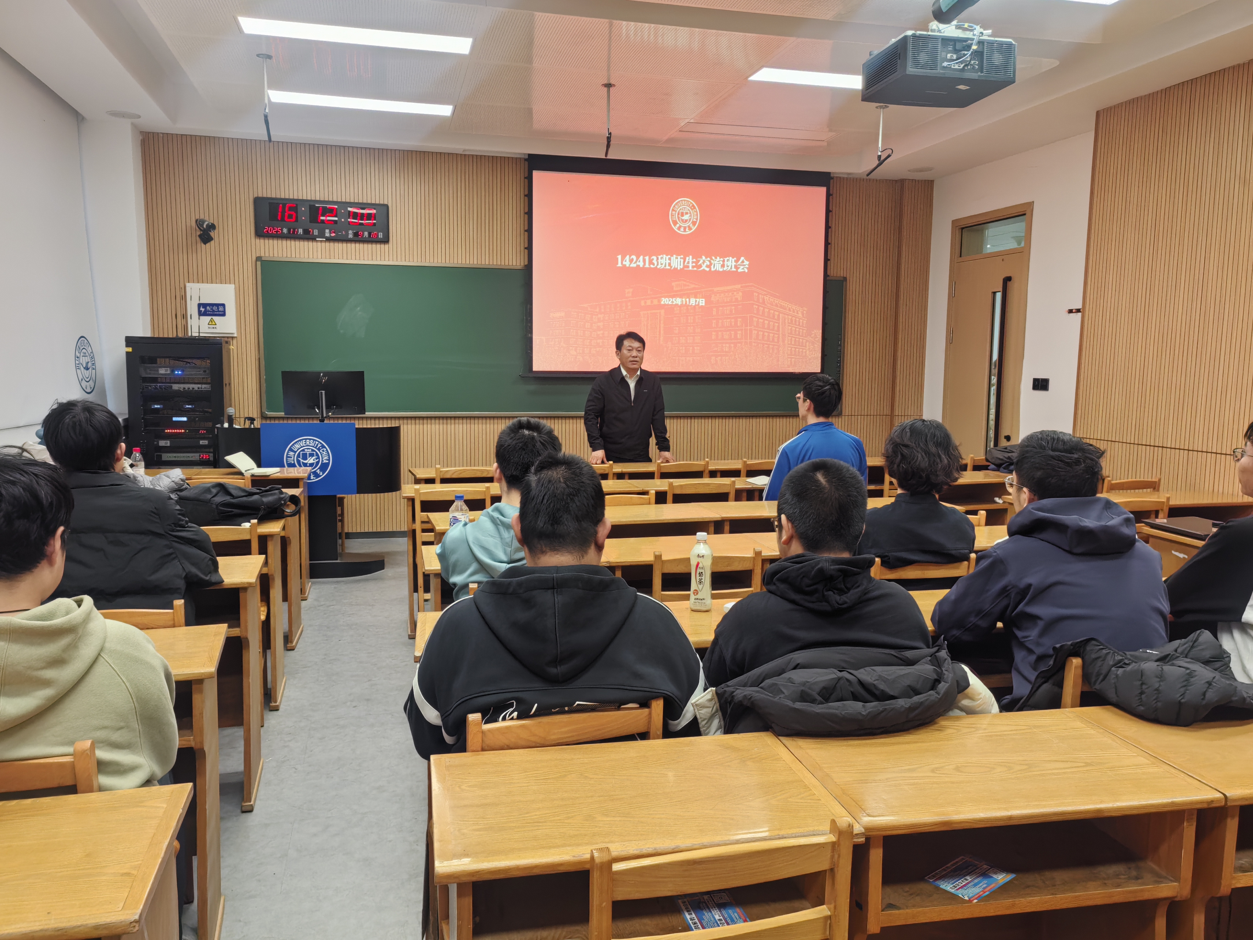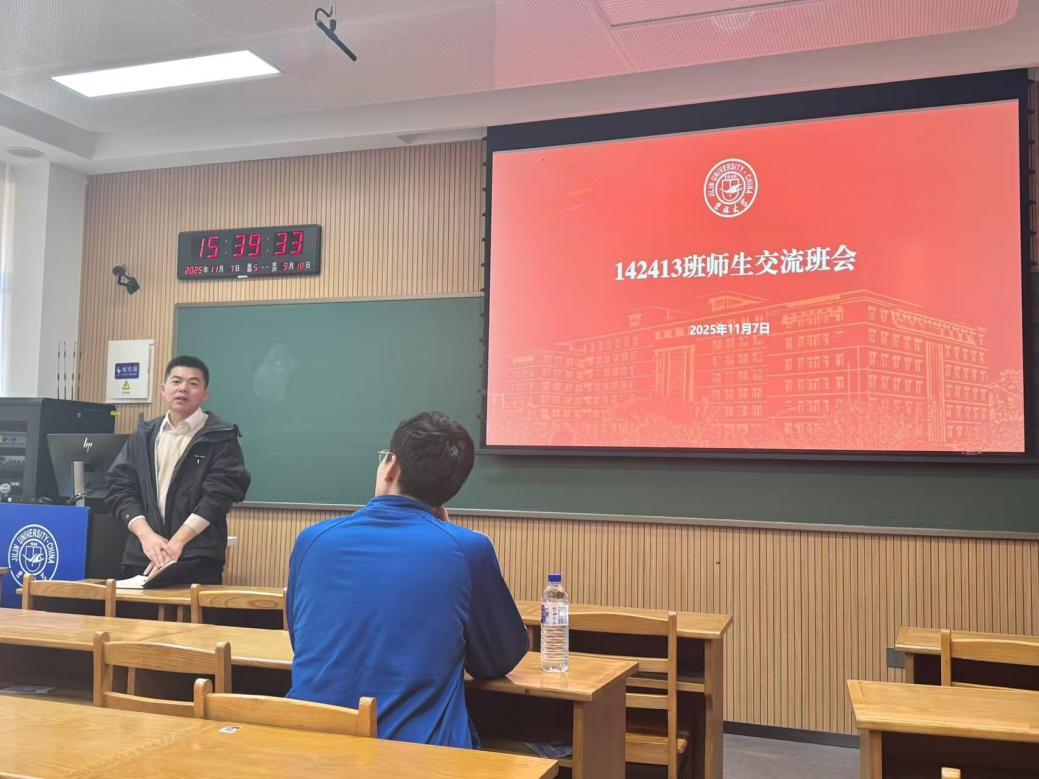 2024级机械工程饶斌班在逸夫楼组织班主任见面会。班主任郑福胜老师、班主任助理赵雨老师应邀出席,与同学们亲切交谈,现场氛围轻松融洽。