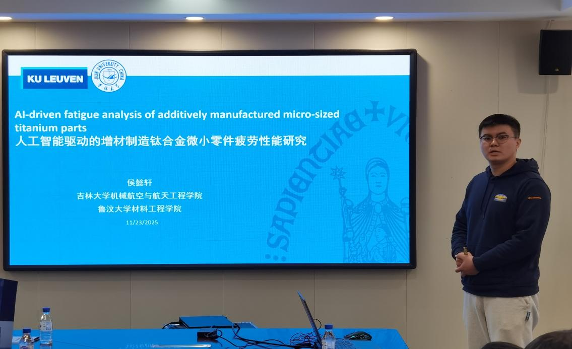 本次活动中共有7位青年学者分享了目前研究成果:长春大学韩明磊副教授提出以环境能量为驱动的第三代无线传感系统,可显著提升传感器寿命与可靠性,并展示其在智能悬架、智能润滑等领域的落地应用。长春理工大学王佳琦博士围绕C/SiC 等难加工材料,介绍了激光—超声复合精密加工技术,通过多能场协同削弱材料各向异性对加工的不利影响。报告涵盖材料微观去除行为、织构化刀具设计等关键技术,为航空航天领域精密制造提供了新路径。吉林大学孟庆宇副教授介绍了团队在大磨粒超硬砂轮激光修整、磨削力调控、磨削颤振监测等方面的系统成果,并展示了集激光在位修整、微结构加工、在线监测为一体的磨削平台,解决高性能传动系统微细内螺纹加工难题。长春工业大学李莉佳副教授用机器学习模型实现“小样本材料疲劳寿命高可信度预测”,突破传统测试对大量实验数据的依赖。吉林大学侯懿轩博士围绕“增材制造零件固有缺陷”这一行业难题,解析了缺陷形貌对疲劳裂纹萌生的影响,并展示了基于AI的疲劳寿命预测方法,为钛合金晶格结构设计和服役安全性提升奠定理论基础。长春工业大学杜永盛副教授介绍激光热场、超声振动与机械加工耦合的多能场加工技术,通过改善材料脆性断裂和刀具磨损问题,实现复合材料的低损伤、高效率加工,为光学、电子封装等行业提供可持续加工方案。长春工程学院侯岱双博士从高铁轮对与汽车纵梁两大典型对象切入,展示基于多源传感与机器视觉的在线检测系统,实现大型结构件的“快速识别—精准测量—实时反馈”,有效提升生产线质量控制的数字化水平。