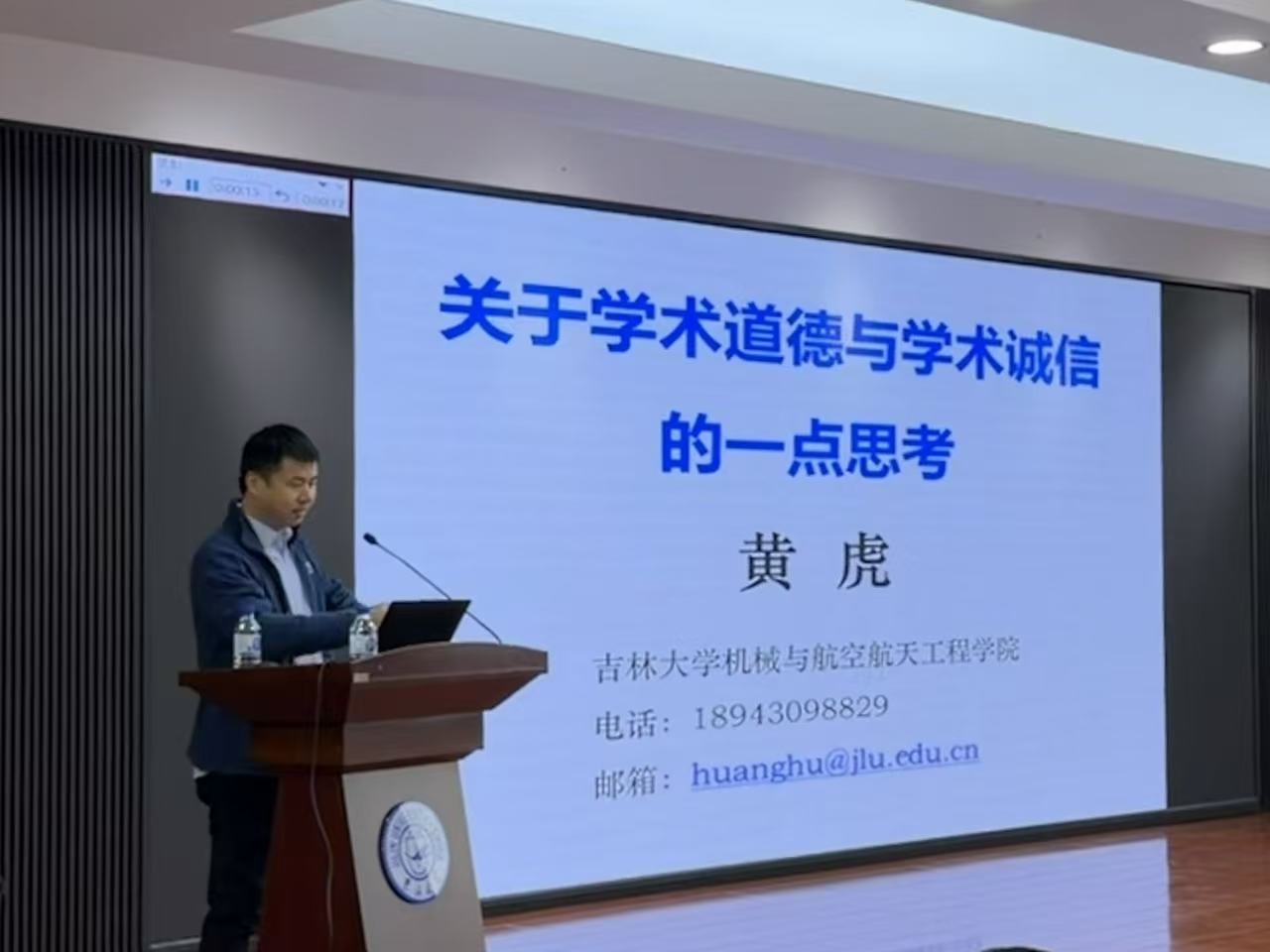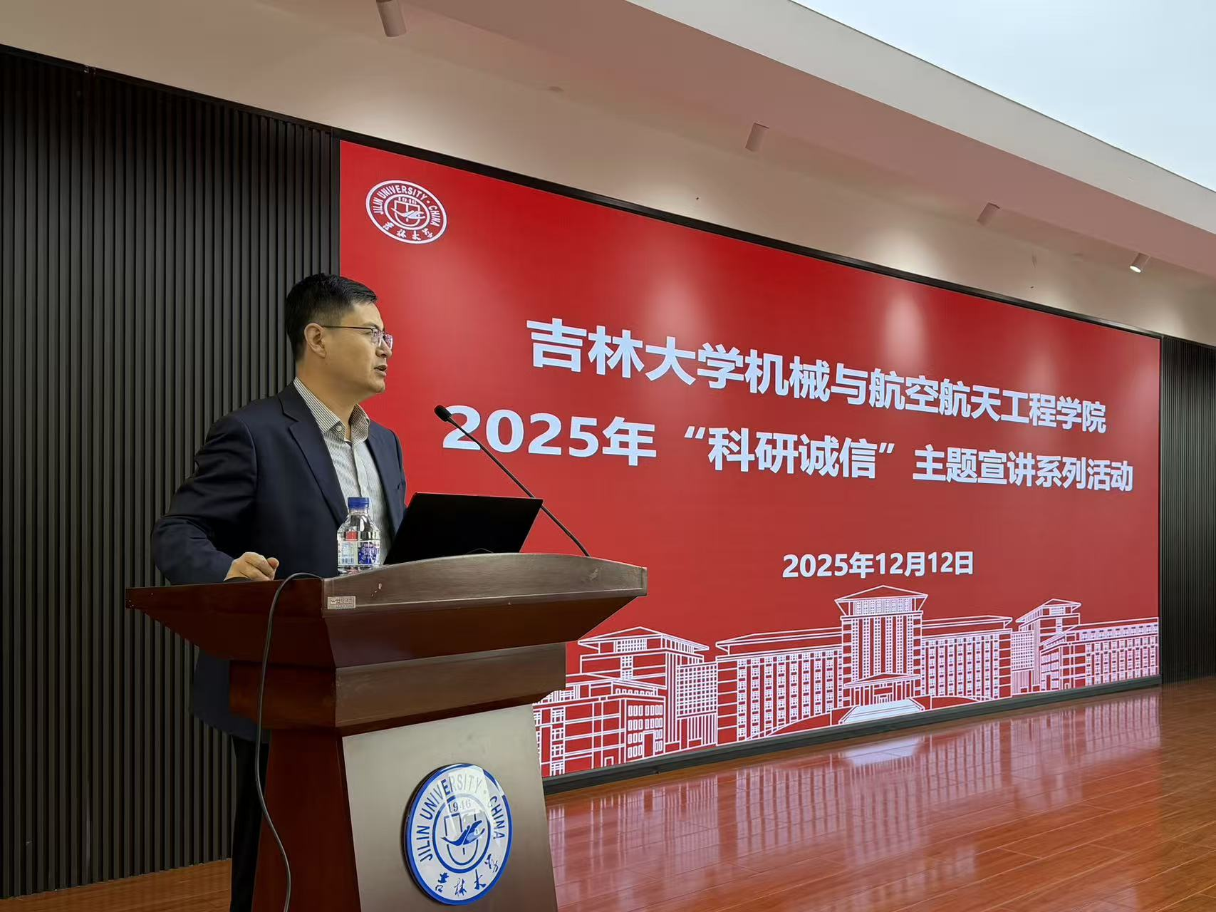 为深入贯彻落实国家科研诚信建设要求,引导全院师生树立严谨求实的科研态度,筑牢学术道德底线,2025年12月12日,学院在南岭校区逸夫机械材料馆802室举办2025年“科研诚信”主题宣讲系列活动。活动特邀吉林大学唐敖庆卓越教授、博士生导师、校学术委员会副主任委员于化东,吉林大学唐敖庆卓越教授、博士生导师黄虎担任主讲嘉宾。学院院长吴文征、院科研办公室主任贾继伟出席活动,学院教职工代表及各年级硕博研究生代表参加此次宣讲,活动由贾继伟主持。