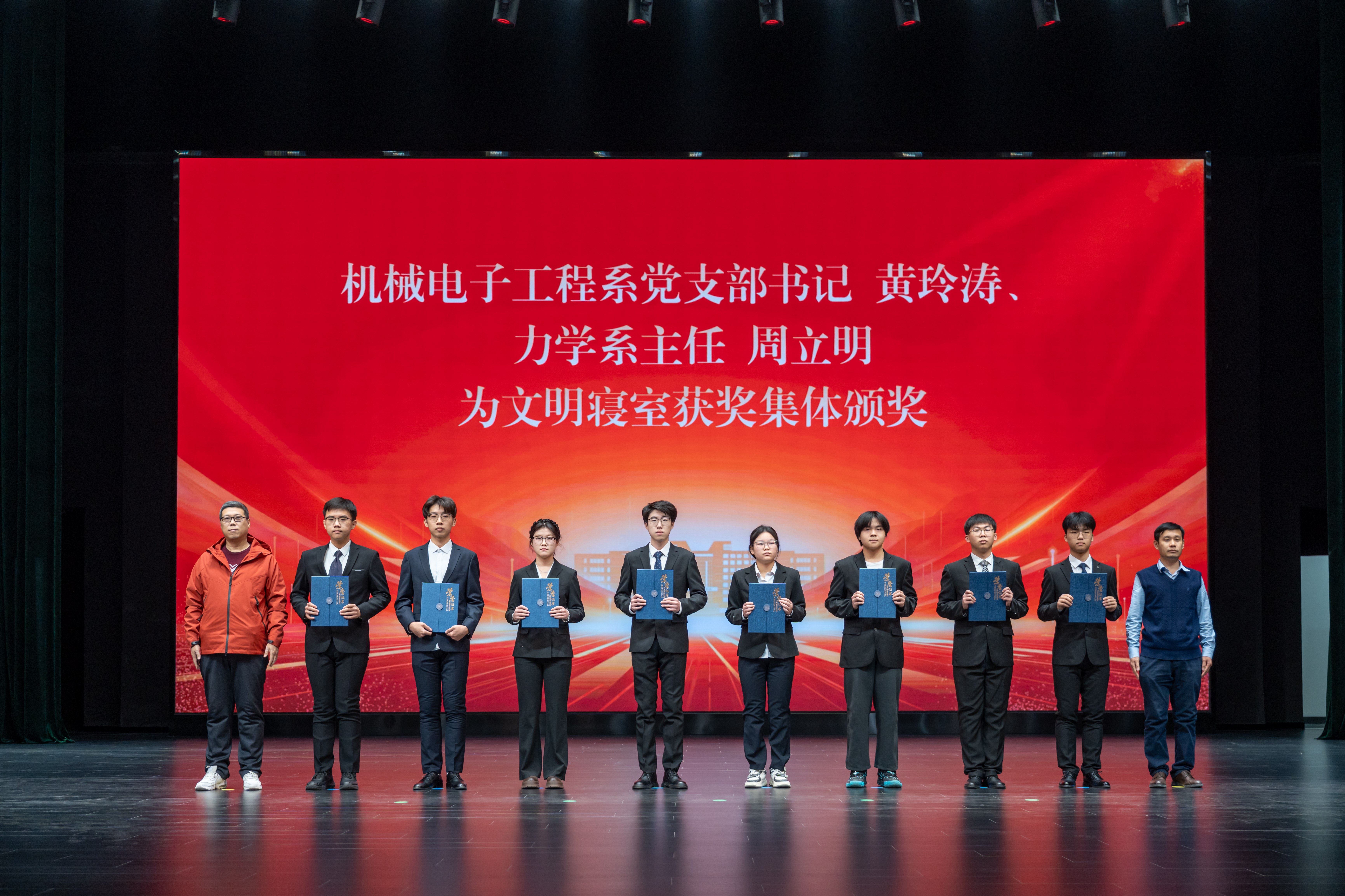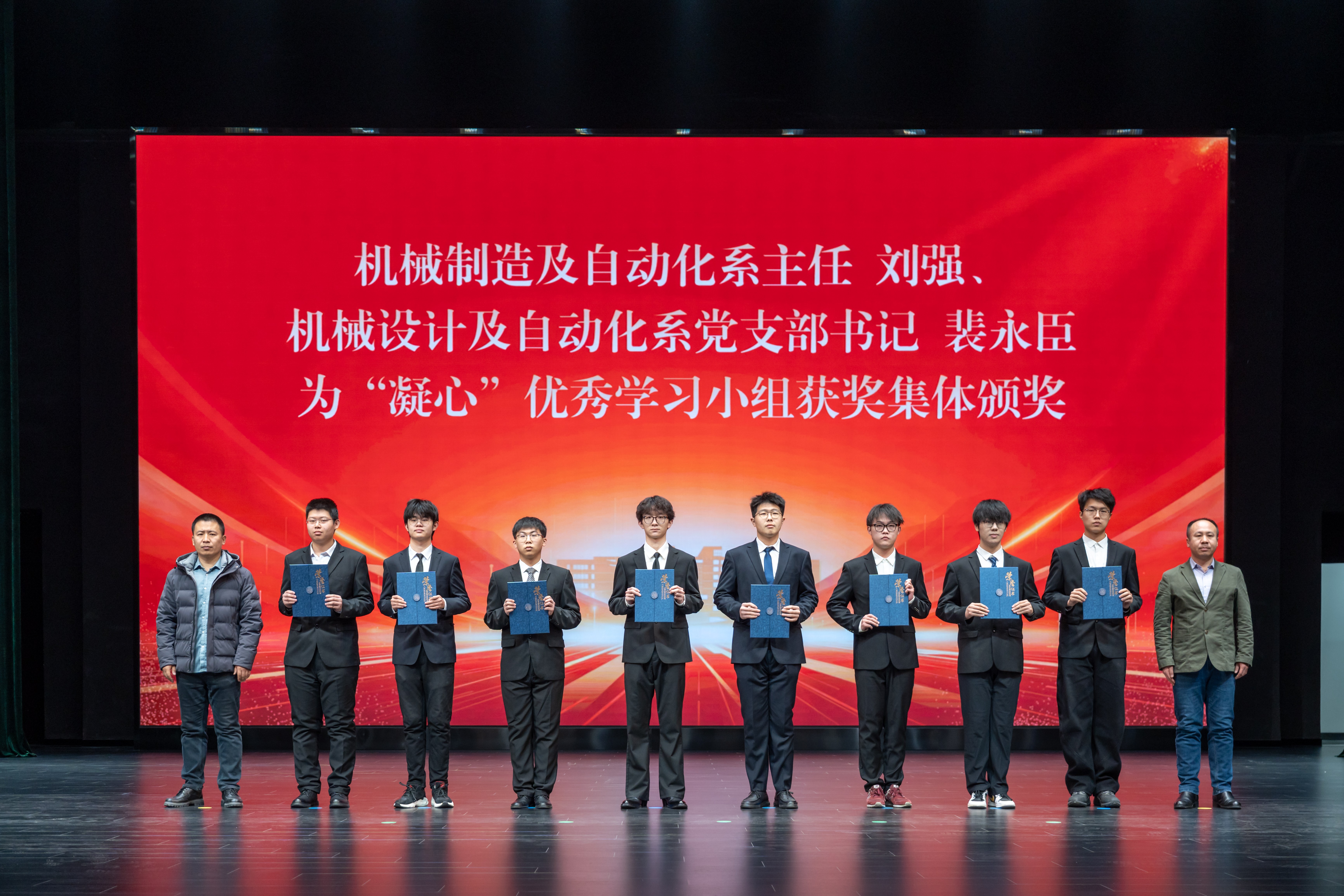 书记郑福胜为卓越班级获奖集体颁奖。机械制造及自动化系主任刘强、机械设计及自动化系党支部书记裴永臣为“凝心”优秀学习小组获奖集体颁奖。机械电子工程系党支部书记黄玲涛、力学系主任周立明为文明寝室获奖集体颁奖。学院学术委员会主任王昕、机械基础实验教学中心党支部书记王丽慧为“知行”社会实践优秀团队获奖集体颁奖。