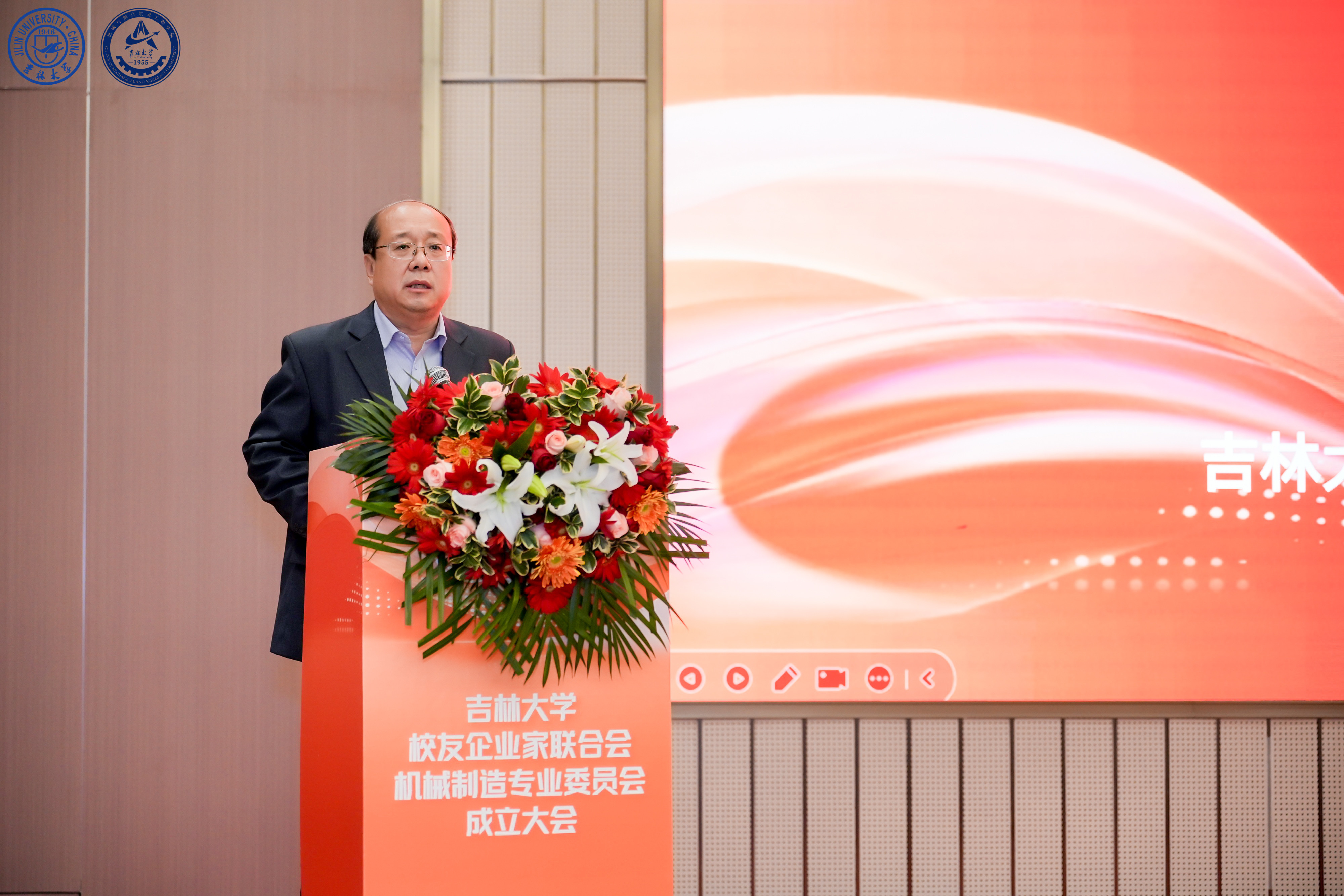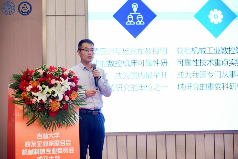 吉林大学校友企业家联合会秘书长关海祥代表联合会致辞。他指出,专委会的成立源于深厚的学科底蕴和迫切的产业需求。他期望专委会能成为技术转化的“超级对接器”、协同研发的推动者、卓越工程师的共育者以及产业生态的拓展者,与联合会一道,共筑“吉大制造”创新共同体。