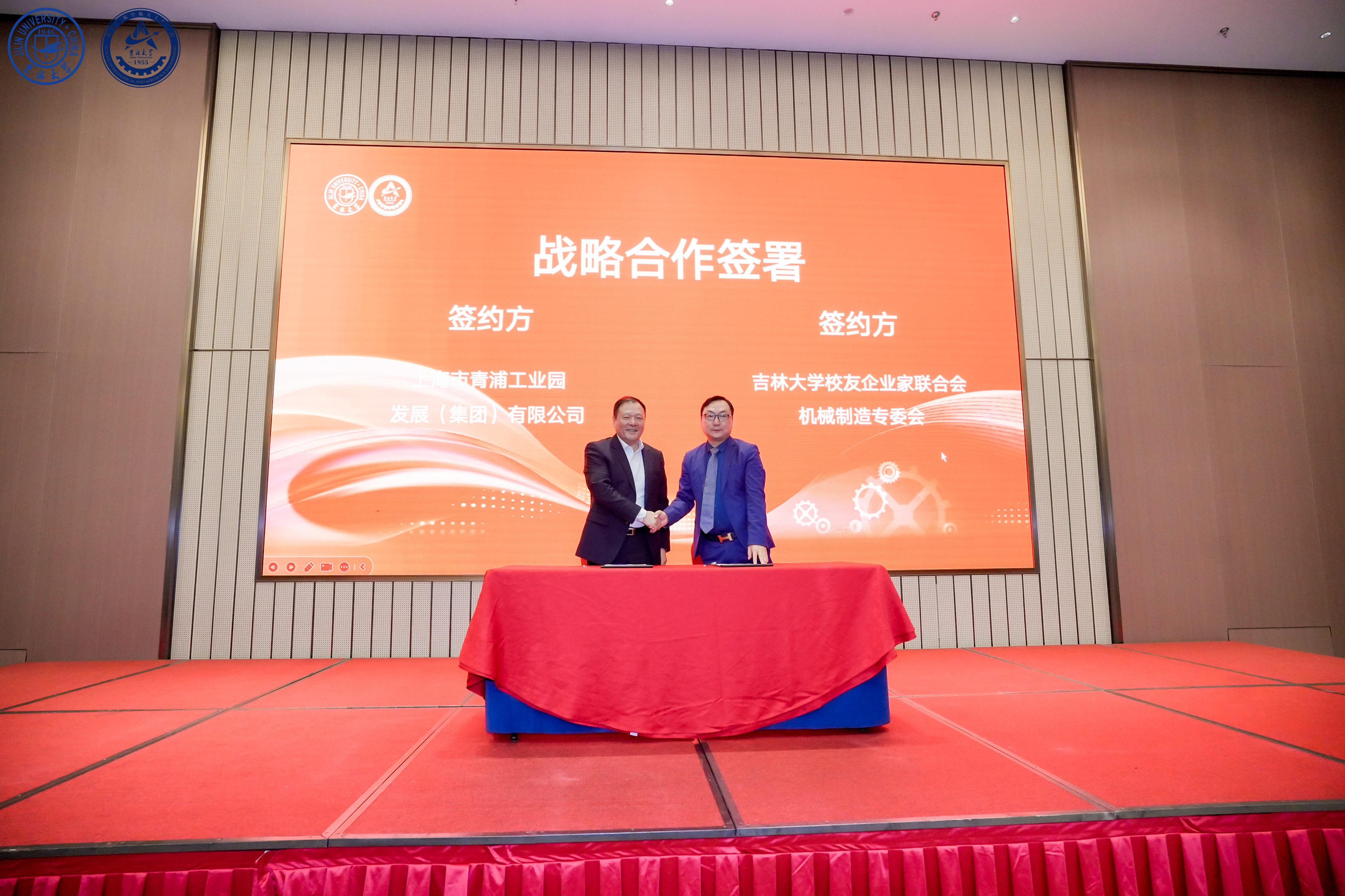 现场,上海市青浦工业园区发展(集团)有限公司党委书记、董事长曹林云与吴金辉会长签署战略合作协议,推动青浦产业资源与吉大校友企业科技、人才优势深度融合。