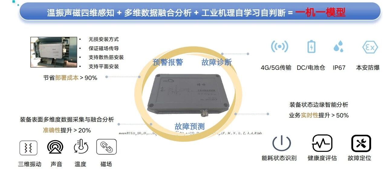 系统采用无损安装方式,支持散热筋及平面安装,保障信号有效传导,部署成本降低超90%。数据通过4G/5G与工业网络实时上传云端,结合本安防爆设计与IP67防护,满足严苛工业环境要求。最终实现对设备状态的实时监测、超前预警与智能诊断,显著提升运维效率、降低维护成本,有效避免非计划停机。