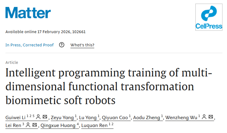 Intelligent programming training of multi-dimensional functional transformation biomimetic soft robots.Matter.DOI:10.1016/j.matt.2026.102661.
