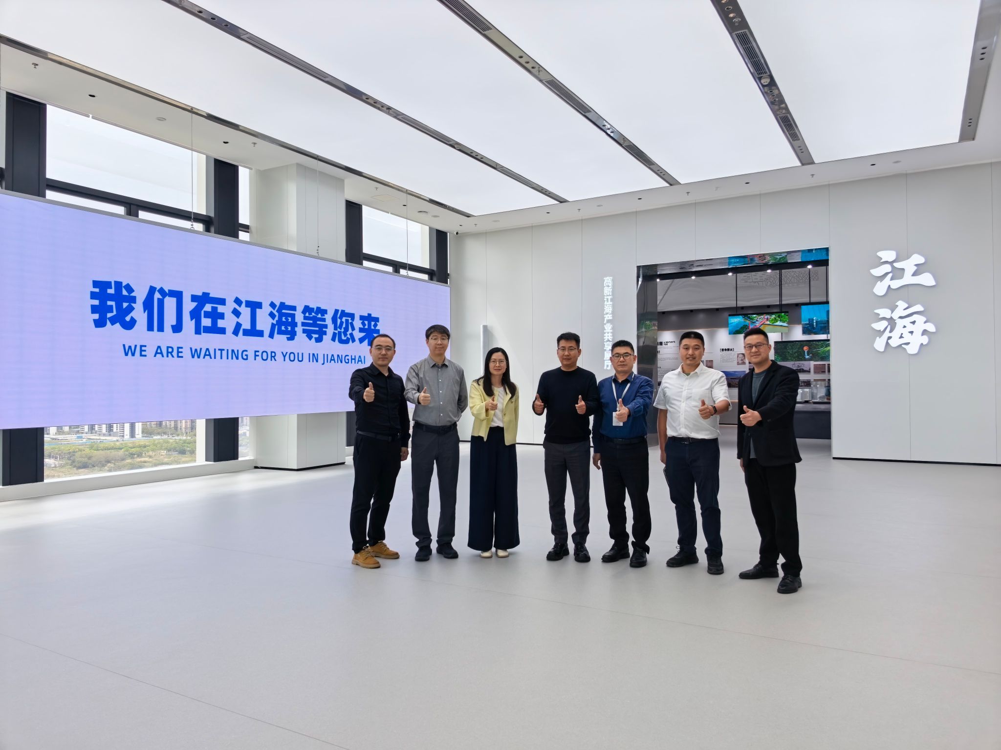 随后,调研组与江门市江海区区委副书记、区长、区政府党组书记颜乐中开展座谈交流。双方就粤港澳大湾区产学研中心落地江海区的政策支持、空间保障、配套服务等事宜进行务实洽谈。颜乐中表示,江海区将全力支持中心建设,热切期待粤港澳大湾区产学研中心在江海区落地生根、发展壮大,充分发挥科研与人才优势,深度融入区域创新体系,助力江海区产业转型升级和高质量发展。期间,调研组一行还参观了江海区展厅,深入了解当地产业布局、发展规划及营商环境。