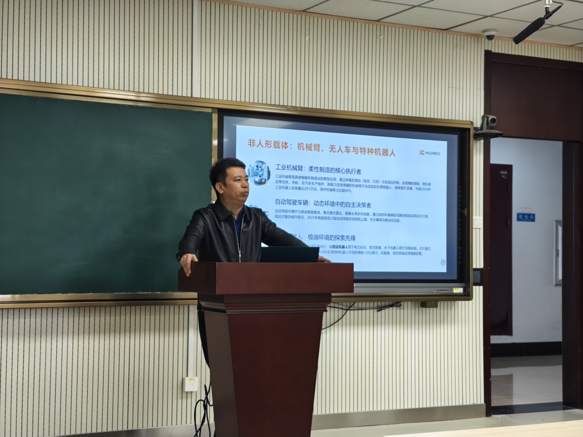讲座现场,王振华教授围绕具身智能的核心内涵、技术体系、产业发展现状及人才能力需求四大维度,展开了系统、深入的分享。主讲人通过对比分析传统AI与具身AI的核心差异,明确指出传统AI聚焦静态单一环境,核心输出为决策结果,而具身AI则适配动态开放的非结构化场景,以完成实际物理作业为核心目标。同时,王教授详细阐释了具身智能需具备的三大核心要素——物理具身、交互驱动、开放环境自适应,着重强调智能体需依托传感器与执行器构建完整的“感知-决策-执行”闭环,而非依赖固定的预编程模式。针对“具身机器人仅为人形、机器狗”的认知误区,主讲人进行了针对性纠正,系统说明仿生机器人只是具身机器人的重要分支,多足、蛇形、飞行等多种形态均属于具身机器人范畴,并重点指出灵巧手技术是决定人形机器人作业能力的核心关键。
