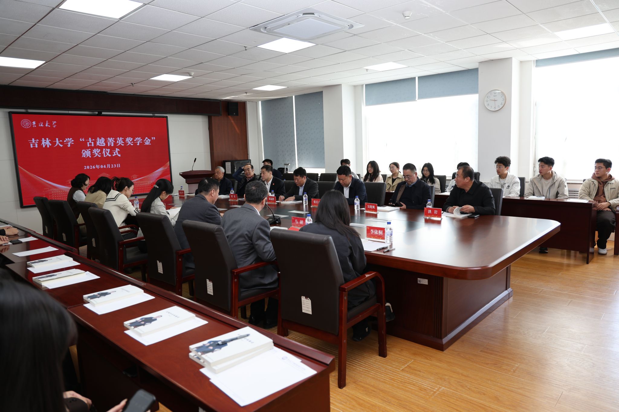 春满杏园,薪火相传。4月23日上午,吉林大学2026年“古越菁英奖学金”颁奖仪式在机械材料馆529会议室隆重举行。学校相关职能部门负责人、相关学院领导、离退休教师代表、校友代表、学生代表齐聚一堂,共襄育人盛典。