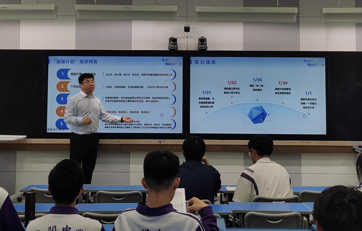 4月18日中午,招宣团队走进天津市南开中学,面向高三学生进行“强基计划”招生宣讲。交流过程中,老师们结合学生学习实际,耐心解答专业选择、备考心态、大学生活等问题,现场交流氛围热烈。