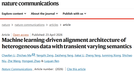 论文得到国家自然科学基金青年A类项目、原创探索计划项目延续资助、国家重点研发计划项目的资助,以“Machine Learning-driven Alignment Architecture of Heterogeneous Data with Transient Varying Semantics”为题在线发表于Nature Communications。博士生李超凡为第一作者,马志超教授为通讯作者,任露泉院士和赵宏伟教授给予理论指导和技术支持。