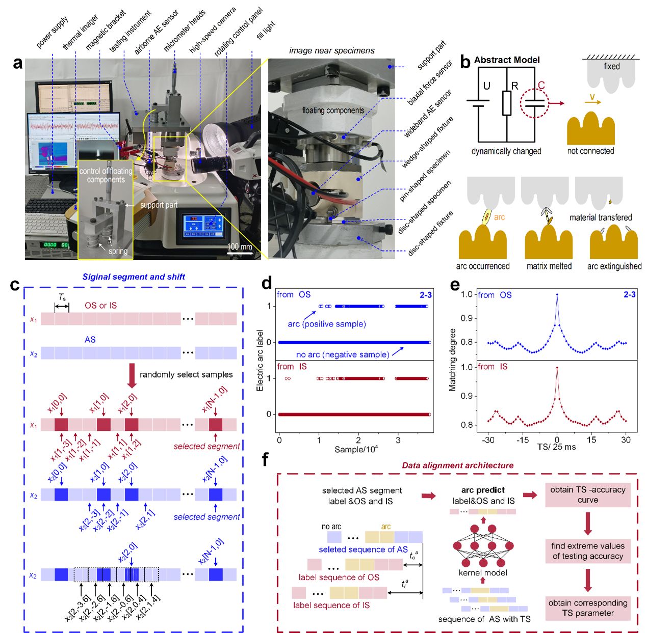 为验证效果,团队在高速载流摩擦工况下采集了光、声信号并开展对齐实验(图2)。结果显示,基于该架构获取的时间偏移与冲击实验、电弧点火器辅助实验测得的参考范围高度吻合,模型测试精度超过90%,对齐精度达毫秒级。此外,声学响应实际上滞后于光学响应,这意味着声学信号反映的电弧事件出现在电弧发生之后。这一发现为揭示基于声学的电弧检测提供了重要依据,也凸显了该架构在高速瞬态测试中的应用价值。
