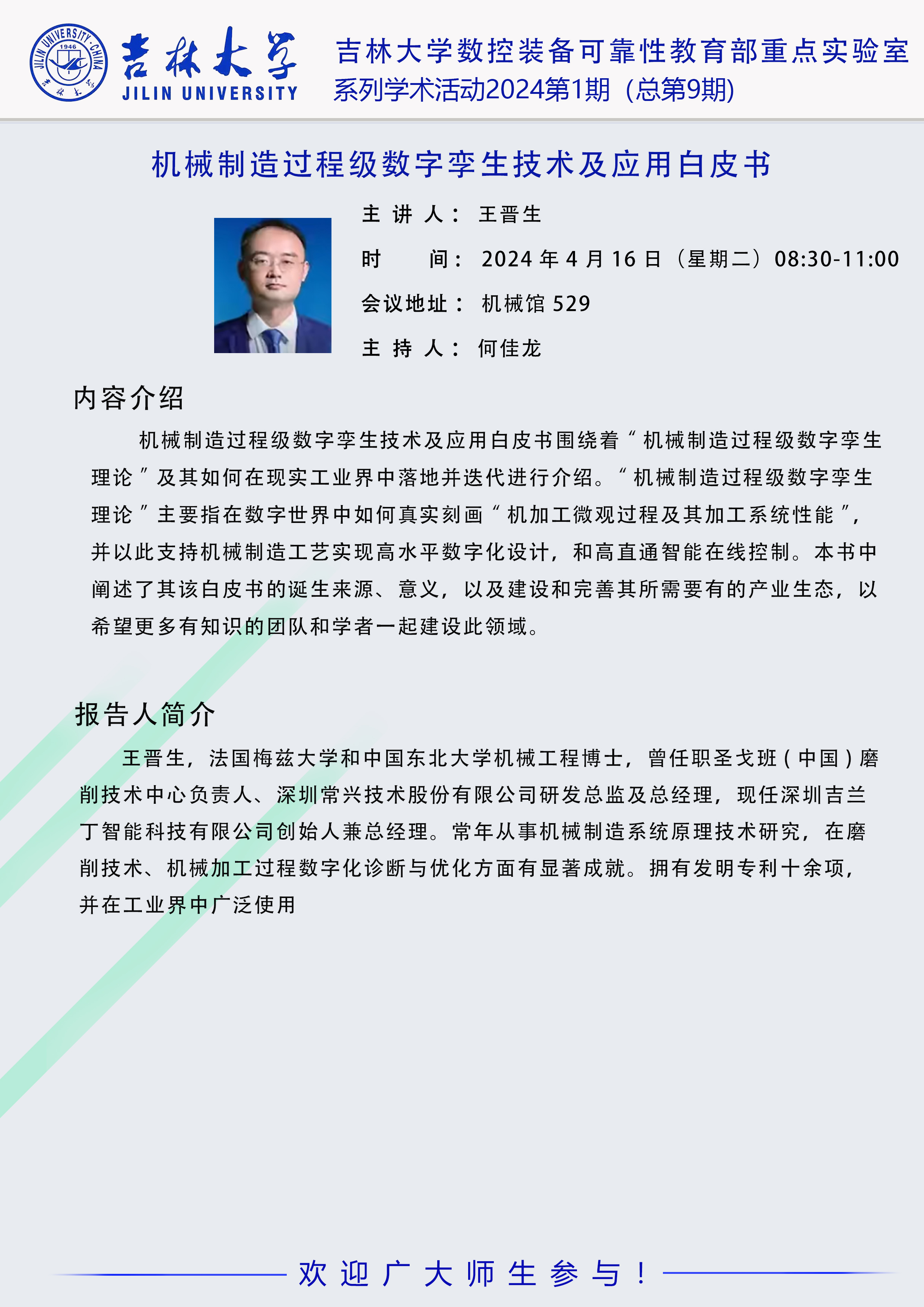 吉林大学数控装备可靠性教育部重点实验室系列学术活动2024年第1期(总第9期)