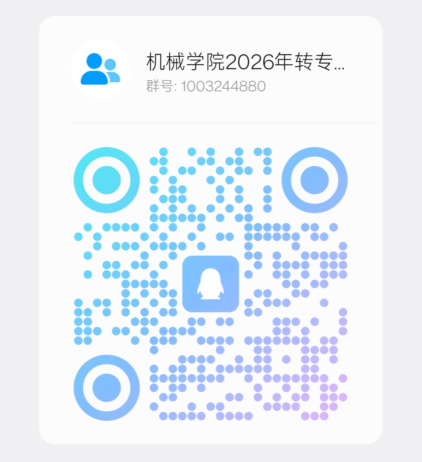 参加笔试考生请加入机械学院2026年集中考核转专业工作群,后续通知会在群内发布。QQ群群号:1003244880