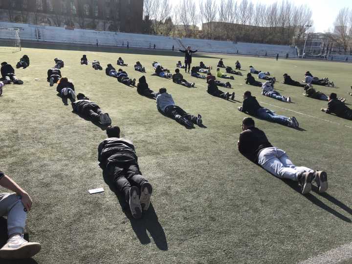 同学们每日早晨6点25分的足球场与晚上9点20分的在十二公寓门前进行训练,文艺部部员带领大家签到并按照队形有序站好,便开始了每天两小时的训练。首先,文艺部部员们在队伍前演示动作并讲述动作要领,同学们积极配合认真观察。接着,同学们跟随着音乐节拍练习健美操动作,文艺部部员们下到队伍中指出并纠正同学们动作上的错误,对没有理解动作细节的同学加以耐心指导,帮助其掌握动作要领。同学们积极配合文艺部部员的工作,每个人都努力把动作做标准,他们相互理解各尽其职,共同为健美操比赛做准备。主席团也会不定期视察同学们的训练情况,安慰同学们可能存在的抱怨情绪,同时激发同学们坚持训练的热情。