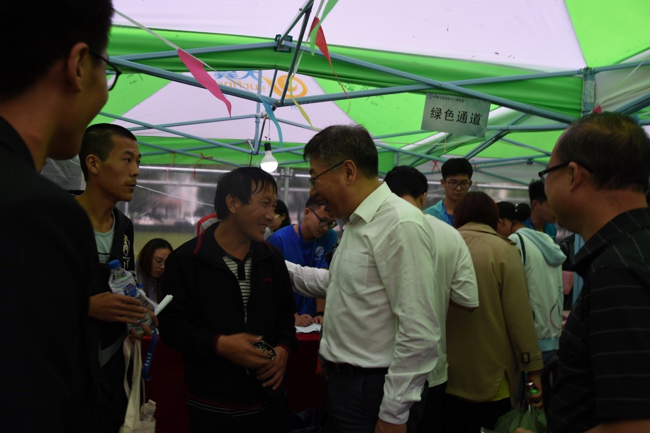 24日清晨,天空下起蒙蒙小雨,但却浇不灭迎新志愿者们对迎新工作的火热、赤诚的心。迎新志愿者们来到了和平校区科学讲堂楼前搭建迎新大本营,他们穿着统一的蓝色工作服装,准备好了新生档案等迎新物资,做好了一切的准备工作。在志愿者的带领下,前来报道的18级新生到达迎新现场,领取各项物品并进行签到,新生辅导员助理也在现场一对一接待新生,并详细了解了其家庭经济情况及生活、学习和心理状况,切实保证了同学们顺利入学。同时在学校领导的视察下与机械学院几位辅导员的监督下,迎新志愿者认真负责的工作态度受到了学校领导老师的一致好评。上午10时,院党委副书记兼副院长郑福胜等院领导视察学生公寓,同新生与新生家长进行亲切交谈。下午14时,吉林大学党委副书记冯正玉及学校相关领导莅临我院迎新现场。在与我院新生密切交谈后,了解到新生家庭情况比较困难,冯书记提出“三个务必”,督促我院务必解决好贫困生入学难问题、务必落实学校相关资助政策、务必保障贫困生在校期间的学习条件。根据冯书记的指示,18级新生辅导员尤爽叮嘱新生要勤奋学习,努力获得奖助学金,已解决生活困难问题。