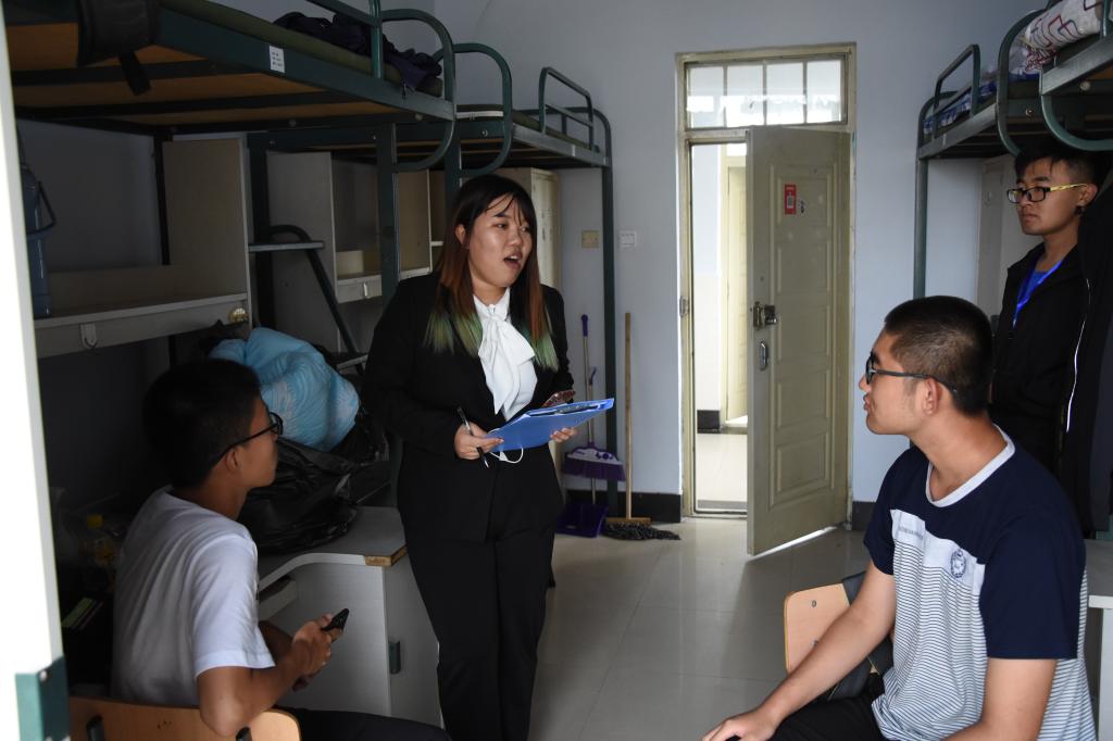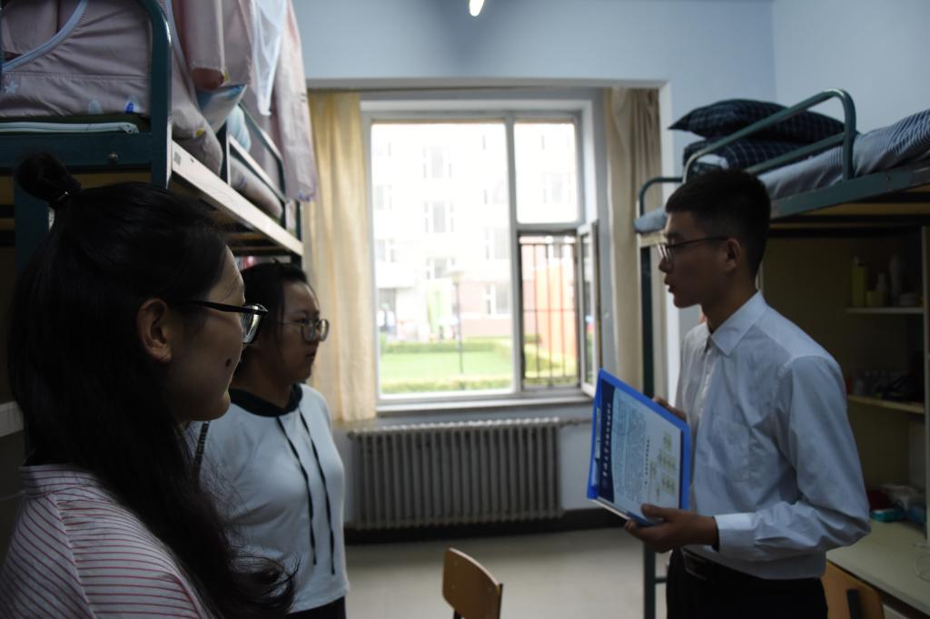 大学寝室干净整洁,同学们十分满意。辅导员助理热心走访了每一位同学,同学们也向辅导员助理们提出了关于水电的使用情况、不允许使用的违禁物品等问题。辅导员助理们对此进行了详细的解释,并基于自己的学习生活经验提出了一些建议,同学们感觉受益匪浅。他们告诫学生们:大学里不要沉迷于网络游戏,要深知学习的重要性,不能荒废学业,并且向学生简要介绍大学中的学团社团等学生组织。他们分享了自己的大学经验及教训,希望同学们能够合理地安排自己的学习时间和课余时间及精力。扩大自己的交际圈,充实且有意义地度过自己的大学时光。