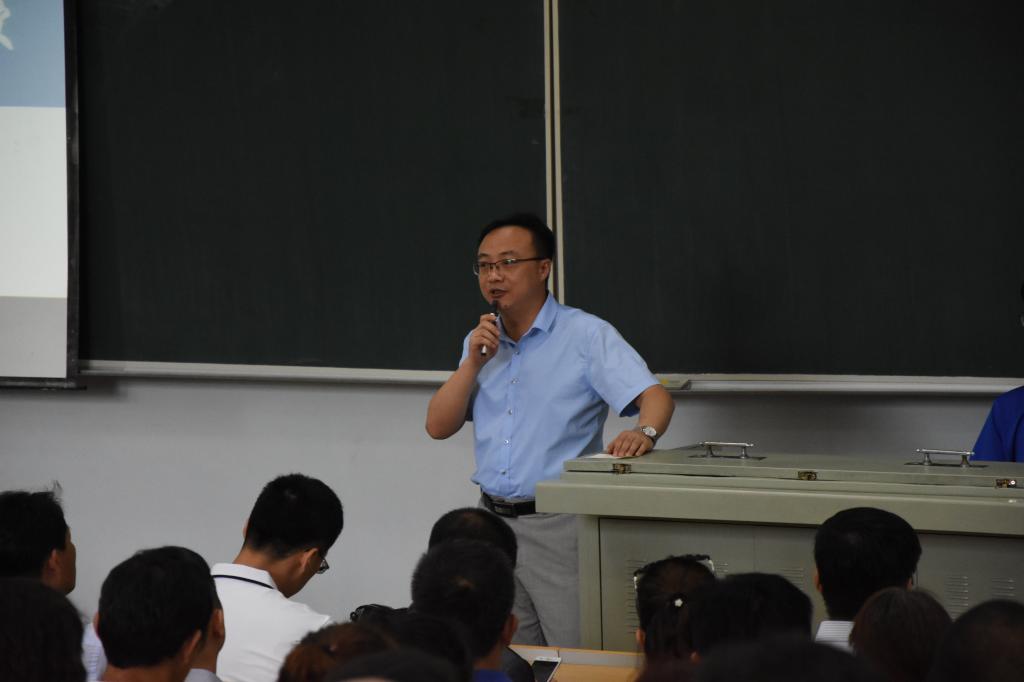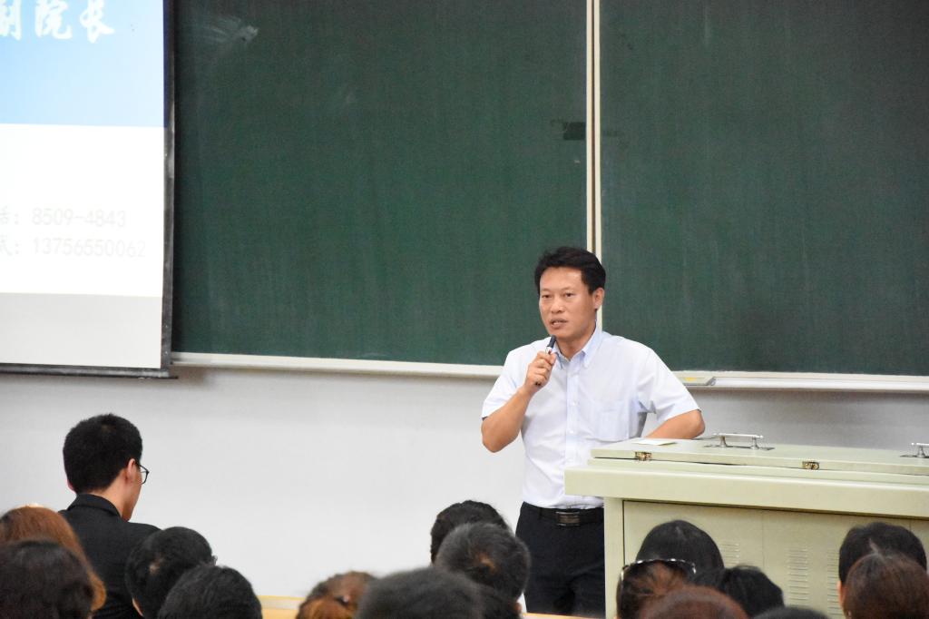 学习表示祝贺和欢迎,希望新生家长能够与学院多联系、多沟通,把每位学生打造成国家社会所需要的人才。同时强调高中到大学是一种进化,希望同学们能在思想上得到真正的进化,在大学四年能够有更多收获。