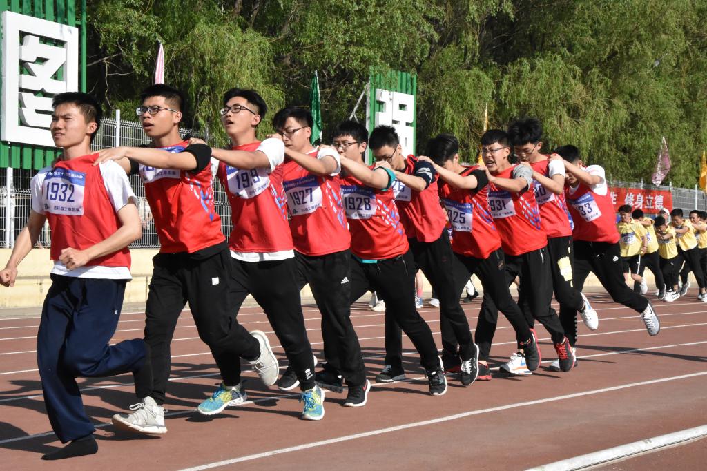 下午三点,22名运动员来到田径场上,做着最后的热身运动。接下来,他们将代表机械学院征战,用一个多月的训练成果为学院争得荣誉。首先进行的是时代列车的比赛。运动员们把双手搭在队员的肩膀上,排成一列。听到出发的枪声,运动员迈开整齐的步伐,喊着响亮的口号,向目标前进。尽管在刚开始有些落后,运动员们不骄不躁,沉着应对,在默契的配合下成功冲过终点。接下来进行的是男生组5000米的比赛。随着一声枪响,一道道身影冲出起跑线,沿着环形的跑道向终点迈进。迎着猛烈的太阳,运动员的体能在缓慢的下降,可是他们依旧在坚定地向前跑,不辜负学院的期望,顺利完成了5000米的长跑。