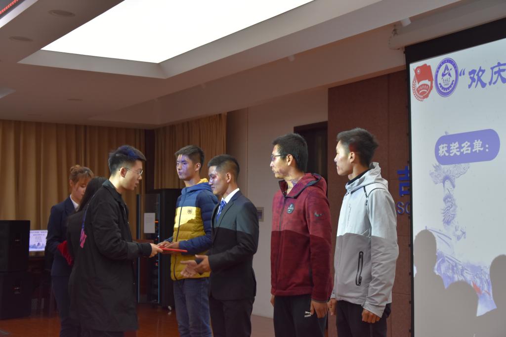 大会开始,主持人向大家介绍了与会的各位主席团嘉宾,并对大家的到来表示感谢。随后,大会进行了各项比赛的颁奖。团委常务副书记张健、团委副书记张佳琪、团委副书记高子悦、学生会副主席王超对获奖同学进行了颁奖。获奖的同学中,“青春告白祖国”演讲的各位同学满腔热血,铿锵的语句彰显他们为国奉献的决心;“翰墨绘山河,丹青颂祖国”,宣纸上的纵横交错,照片上的光影横溢,都是吉大学子对祖国的深深告白;“庆国七十载,吉大展风采”,一段一段精彩的短视频洋溢着同学们的朝气,更洋溢着对祖国母亲深深的祝福!