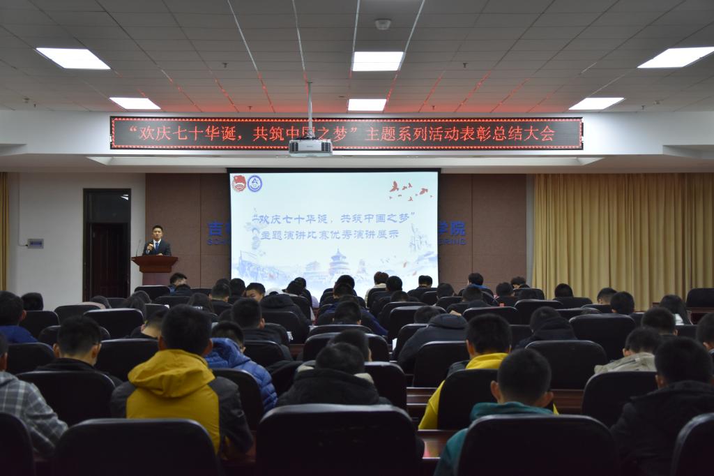 团委组织部举行了“欢庆七十华诞,共筑中国之梦”系列主题活动表彰大会。机械学院团委常务副书记张健、学生会主席衣航等主席团成员以及获奖人员、学生代表参加了本次大会,会议由团委组织部志愿者耿晨主持。