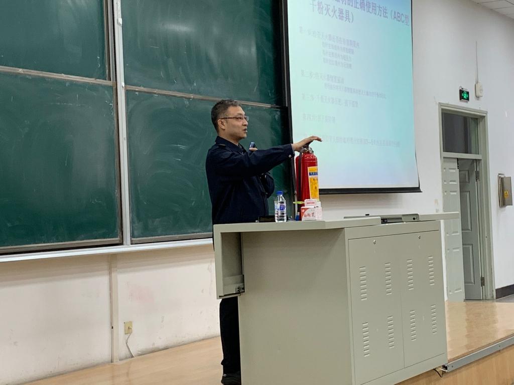2019级同学的消防安全意识,加强校园内的安全建设,11月12日,机械学院学生会维权管理部特邀请东区保卫办公室消防科科长韩旭老师对2019级同学进行消防安全知识培训。机械学院2019级新生辅导员赵帝老师及全体新生参加了本次讲座。
