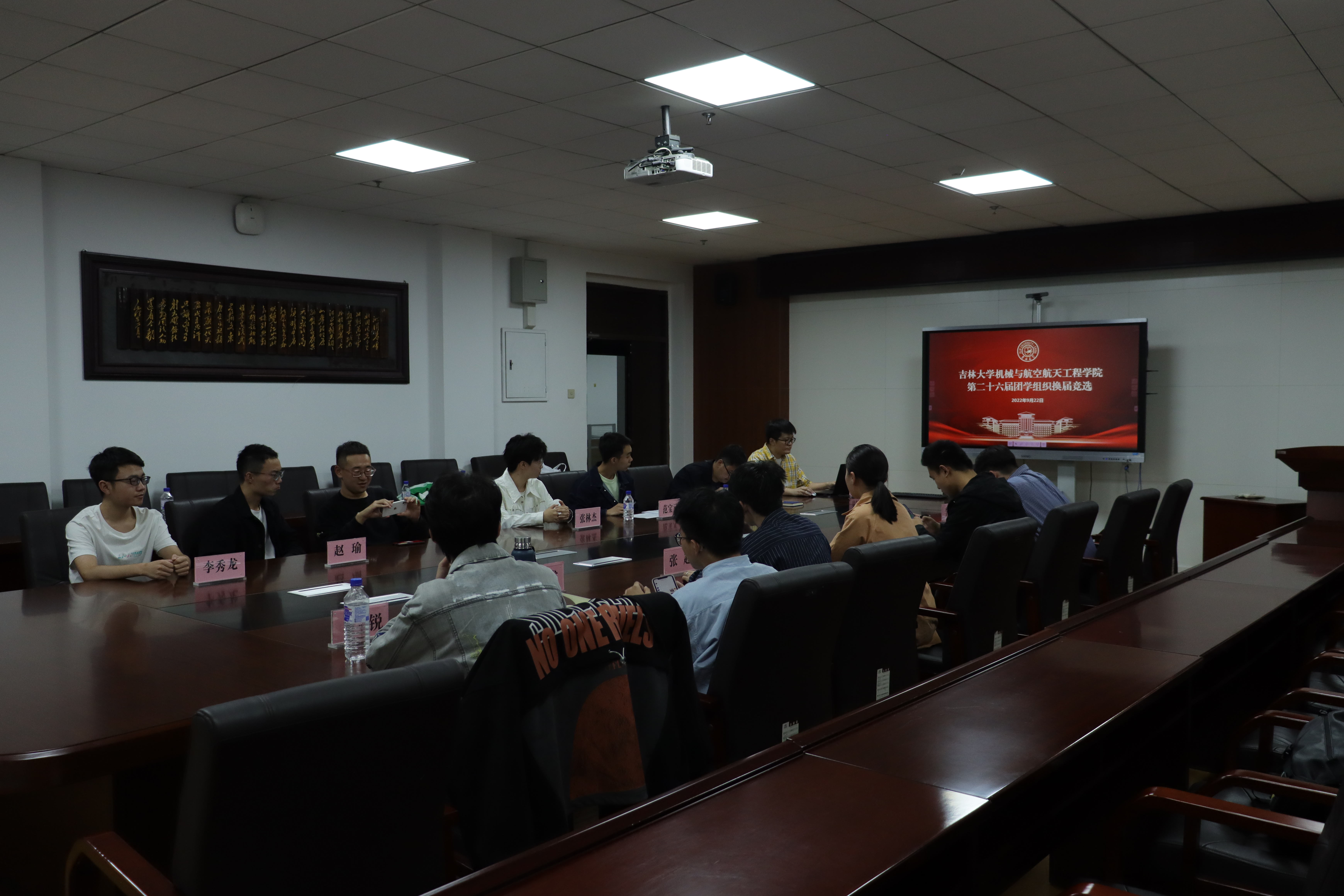 团委于机械馆529会议室举行学院第二十六届团学组织主要负责人换届答辩。辅导员李世超、赵帝、张富尧,兼职辅导员李聪出席,院团委第二十五届主席团全体成员参加,活动由团委秘书长曹润楠主持。