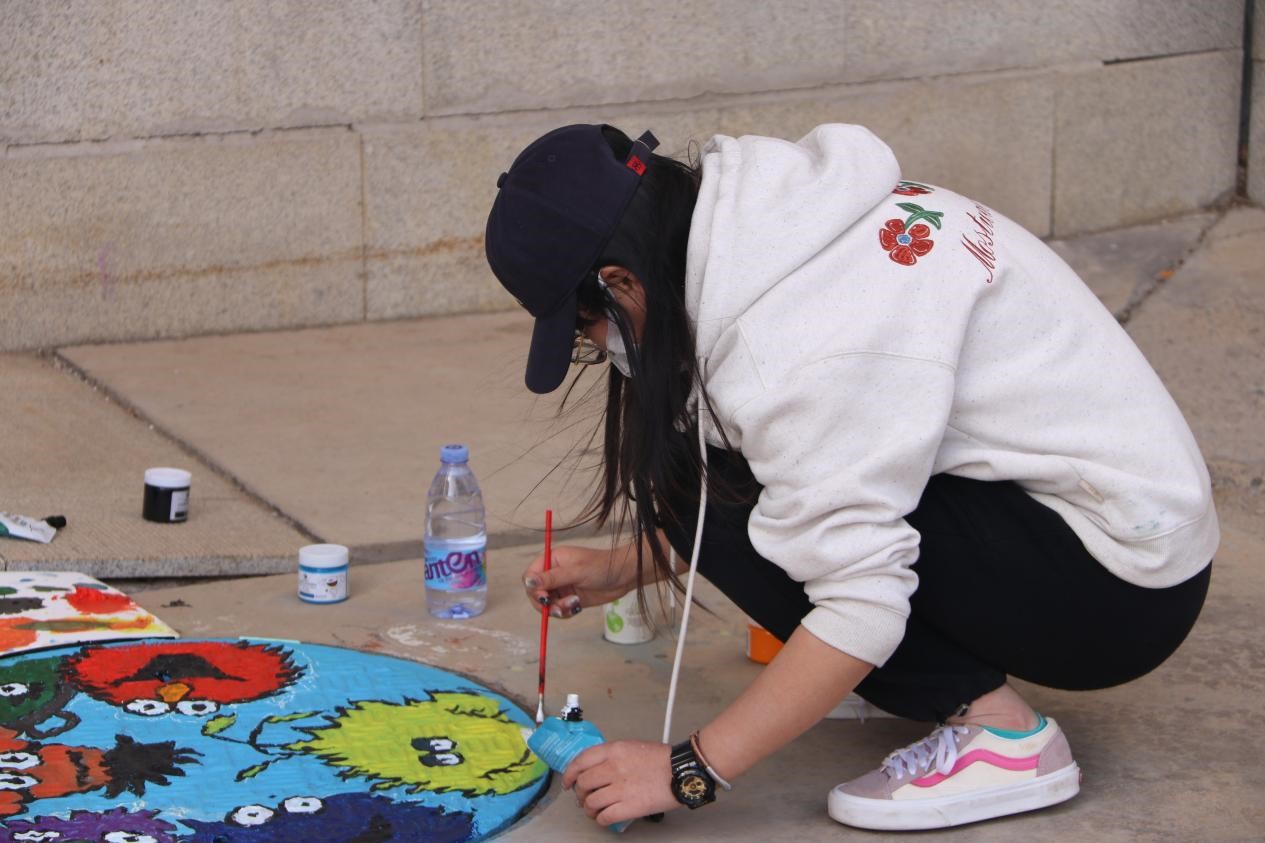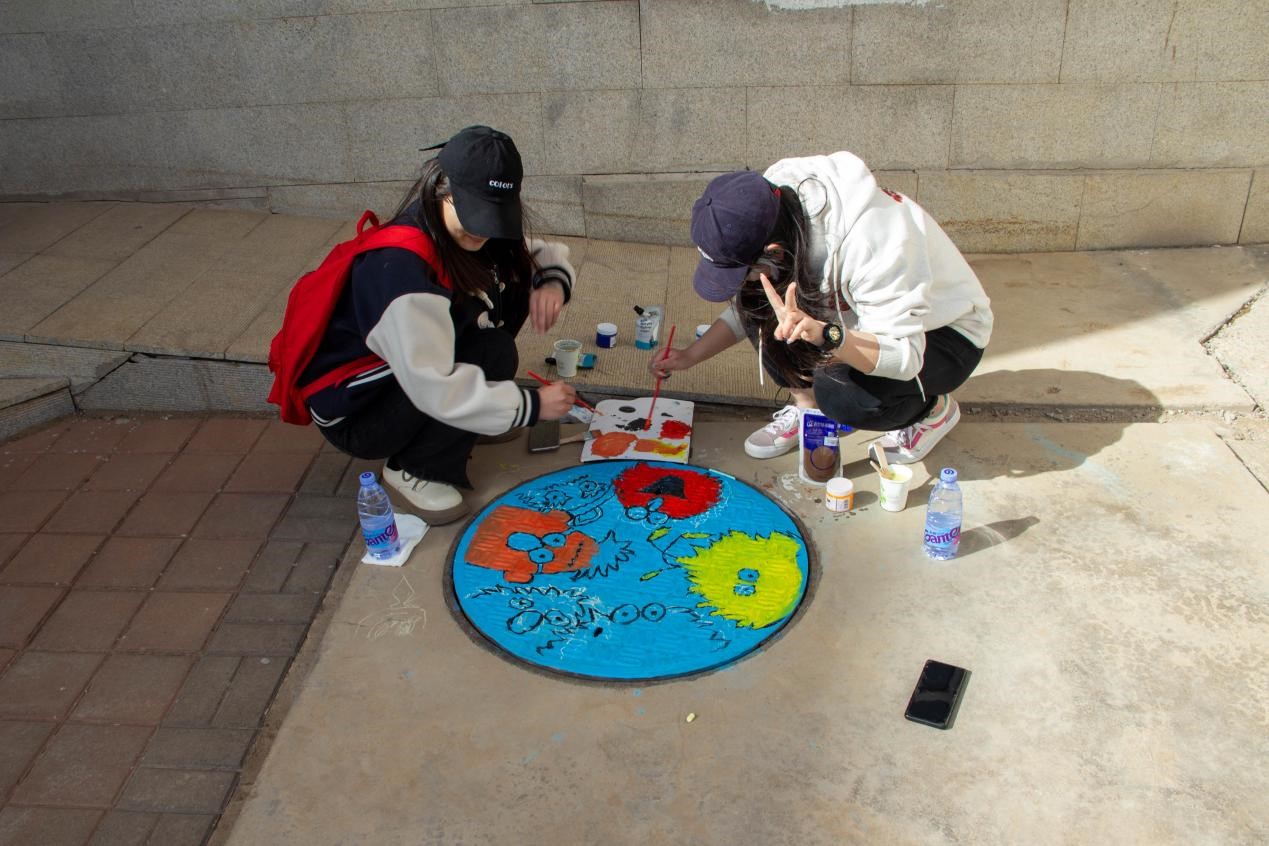 在南岭校区的机械馆门前、杏花大道、十二公寓楼下和二餐门前,同学们调制好颜料,先用粉笔勾勒线条,再用颜料填涂,在墙体和井盖上绘制了一幅幅活泼生动的图案。这些图案中既有哆啦A梦、海绵宝宝等一些家喻户晓的动画角色,又有各式各样的风景图、建筑图,让普通的墙面和井盖华丽变身。活动中,两校同学集思广益,充分发挥想象力与创造力,一笔一画将心中的色彩绘制在校园,彩绘整体风格轻松明亮,丰富有趣,让昔日单调的墙面和地面,穿上了崭新的外衣。他们尽情挥舞着手中的画笔,一幅幅生动有趣的图画出现在同学们面前,引得过往师生驻足观看、拍照打卡。