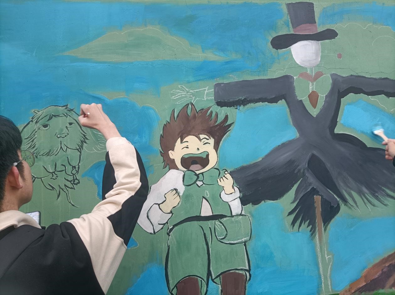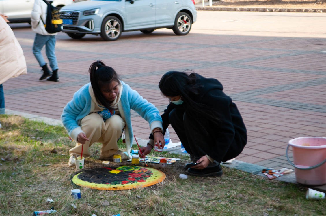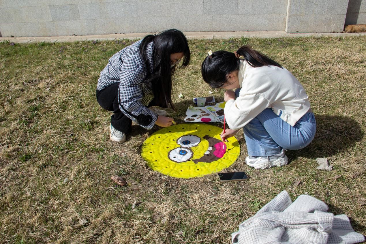 学生会素质拓展中心联合东北师范大学清雨坊书画协会、南岭刀笔画工作室,成功举办“‘井’上添花·墙下‘杏’绘”——校园彩绘活动。