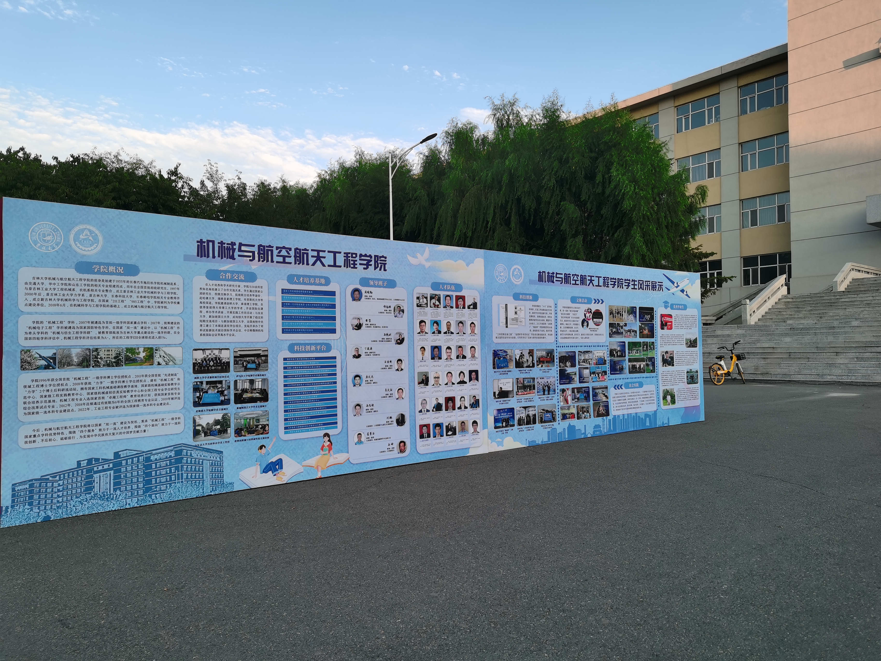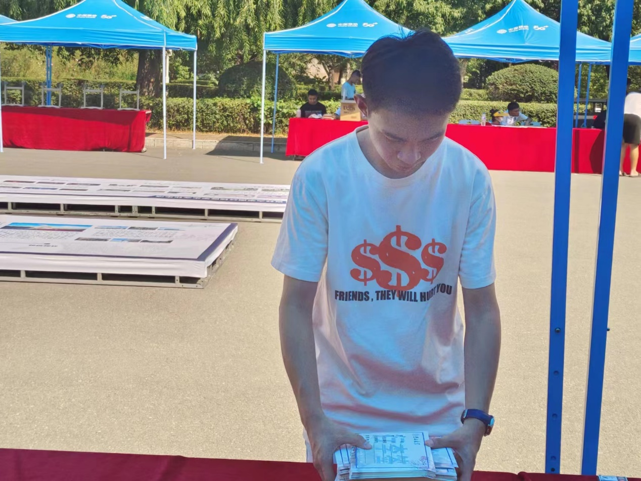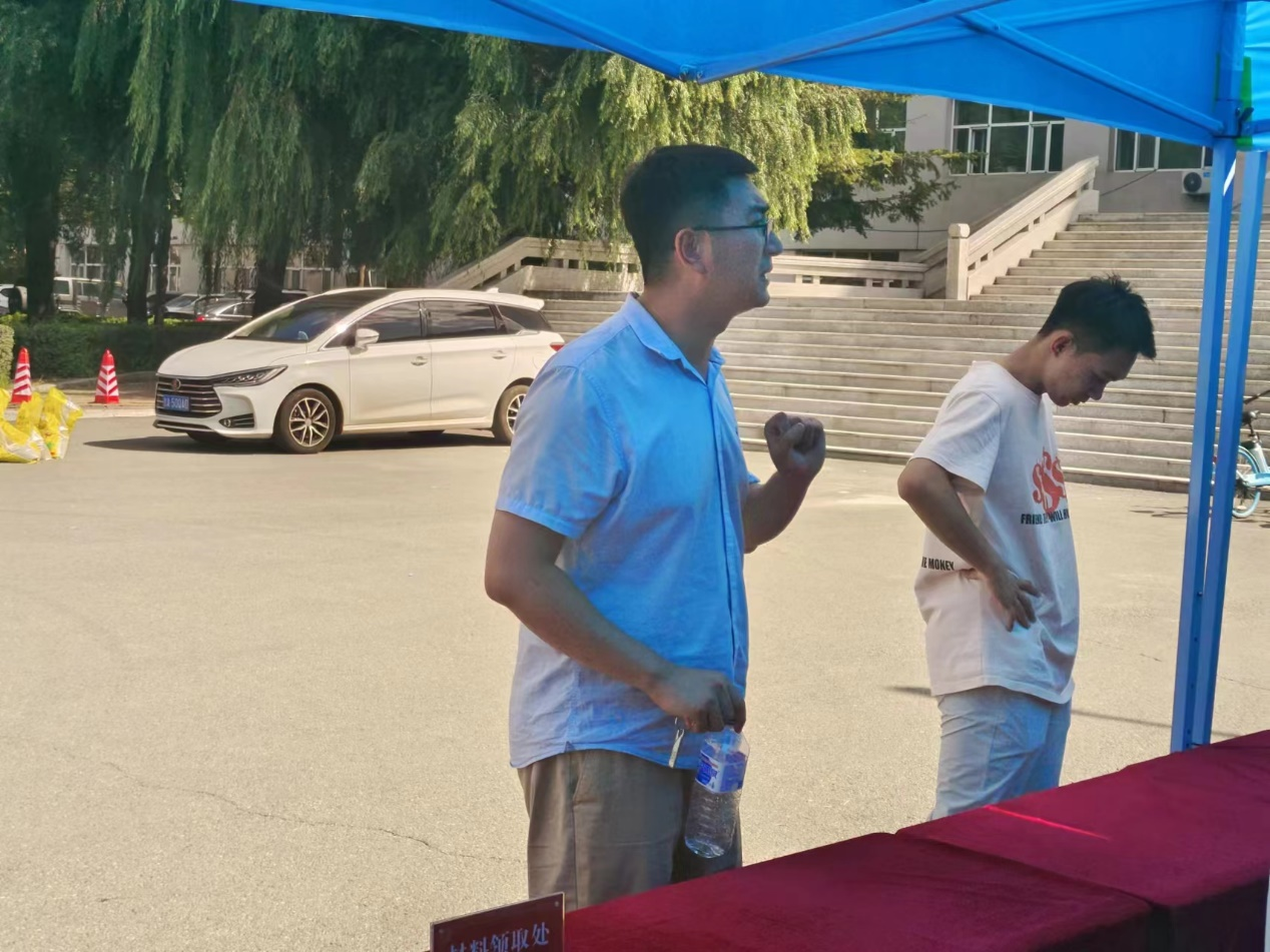 中午十二点,在短暂的会议安排后,老师们带领后勤组同学在基础实验楼前展开现场布置工作。搭建帐篷,摆放工作桌椅、指示牌,放置学院特色展板,搬运手持拍照板和爱心物资等事宜,在老师们的指导和同学们的协作下有条不紊地进行着。截至下午二点一刻,现场布置等准备工作已全部完成。