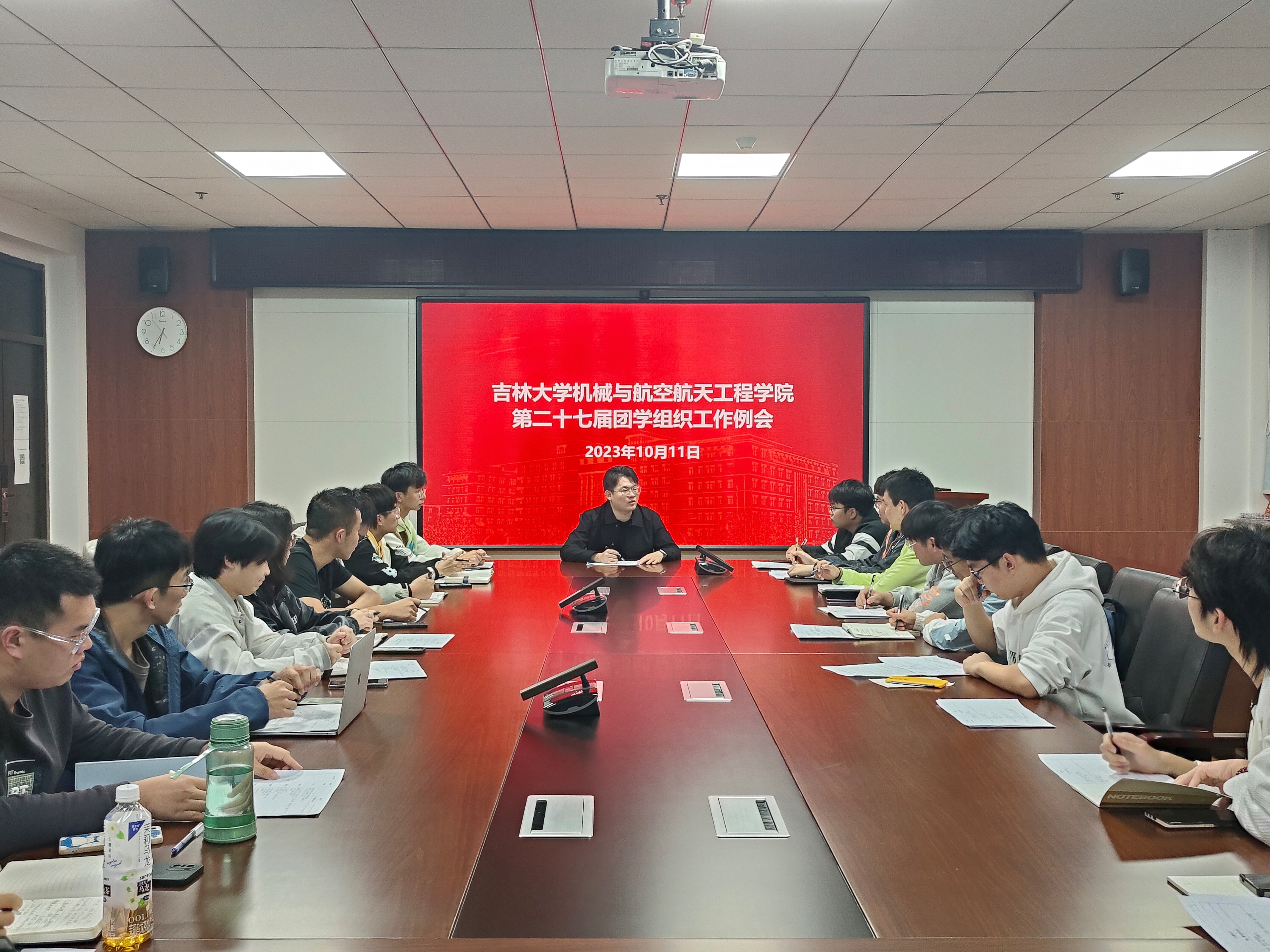 团委于2023年10月11日晚六时在机械馆529会议室召开第二十七届团学组织工作例会。学院团委负责人李世超老师、主席团成员以及各部门部长参会。