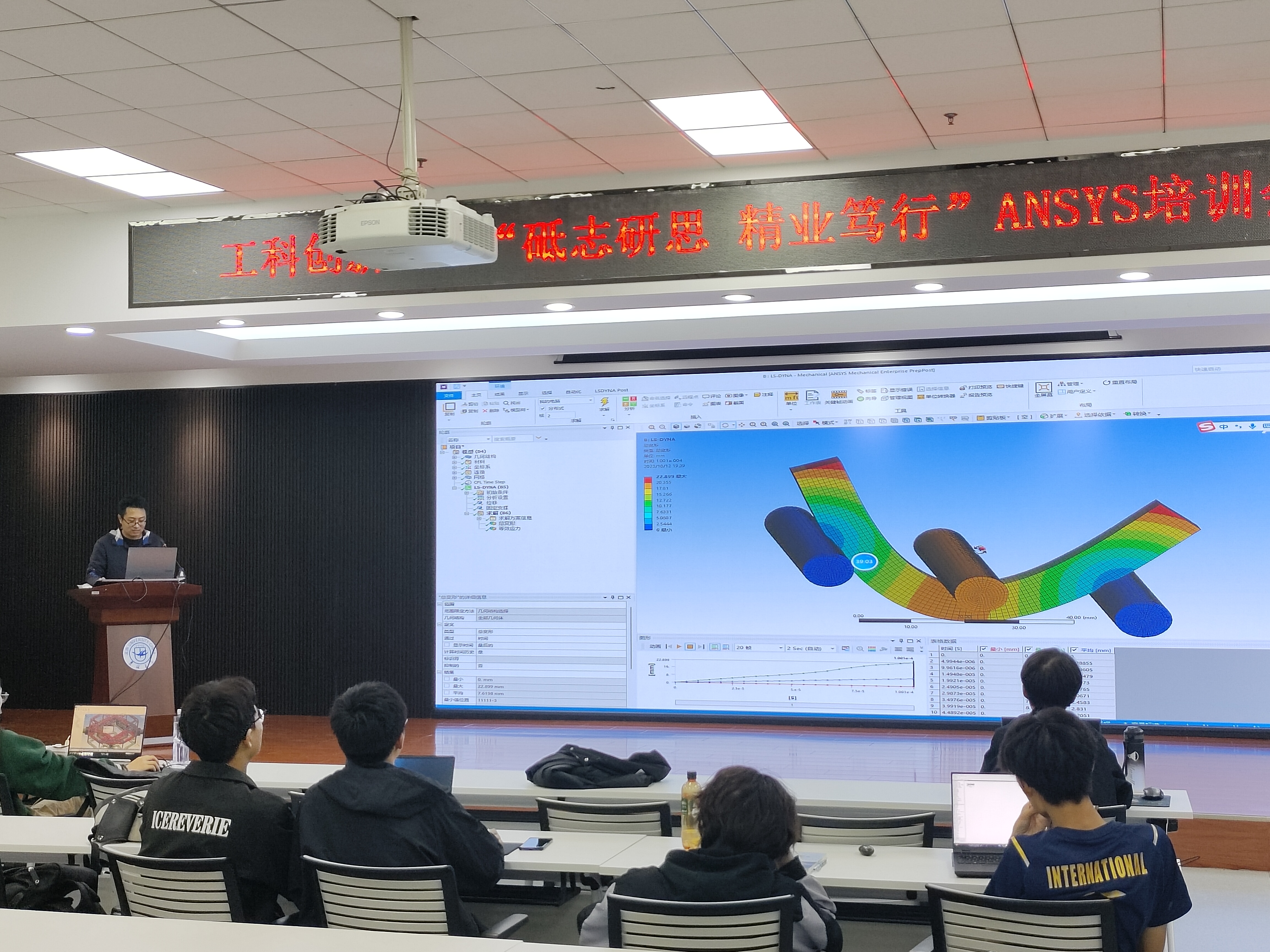 本期培训的软件为ANSYS,该软件是常用的有限元分析软件。孙子皓同学通过分析多杆碰撞的实例,按照软件的结构脉络,全面的介绍了ANSYS的显式动力学、静力学分析等模块的功能。在教学的过程中,孙子皓同学耐心细致地逐一解答同学们在软件实操上的问题,与同学们积极探讨软件应用技巧,同学们受益匪浅。