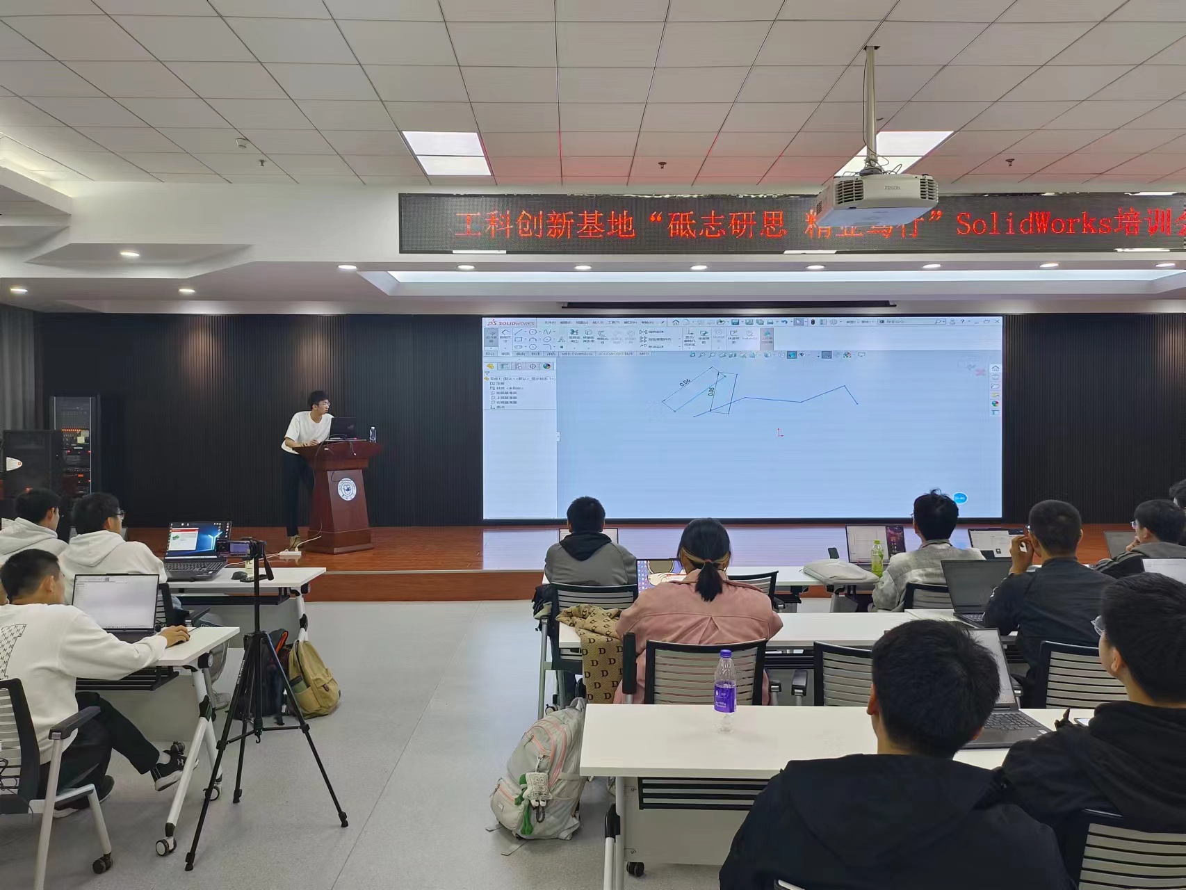 在整个过程中,钟振宇同学及其他工科创新基地技术培训部的成员积极的与同学们交流互动,热心帮助同学们理解、运用SolidWorks中的各种指令,同学们受益匪浅。
