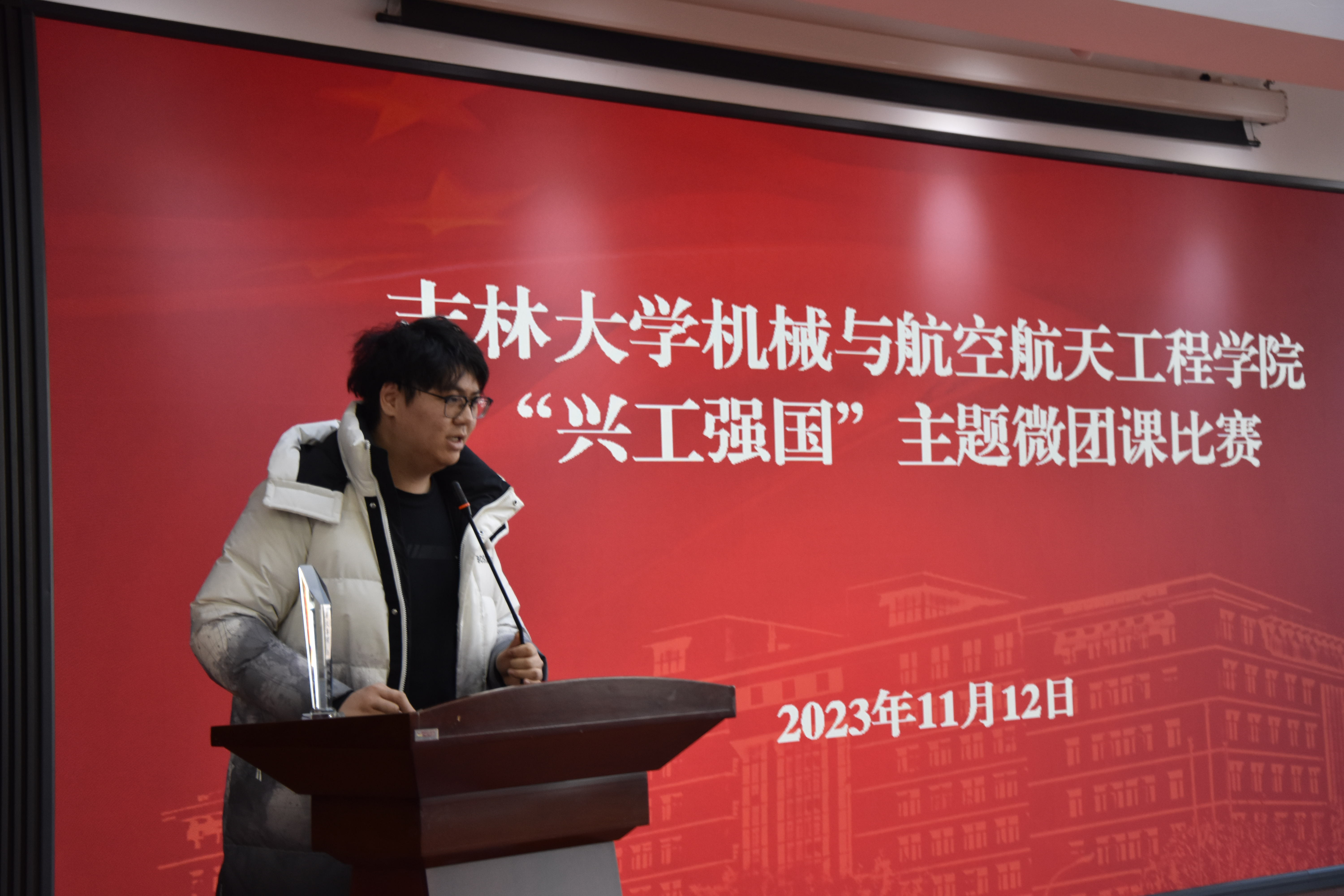 为深入学习贯彻落实党的二十大精神,鼓舞同学们传承红色薪火,铸牢“兴工强国”的责任感与使命感,丝瓜视频 团委于11月上旬组织开展了“传承红色薪火,挺膺时代担当”兴工强国主题微团课比赛,并于11月12日下午14:00在逸夫机械材料馆八楼报告厅举办决赛。活动由学院团学组织学生干部李德恒主持,学院团委负责人李世超老师、学院团学组织主席团成员担任评委,学院各团支部学生代表参加活动。