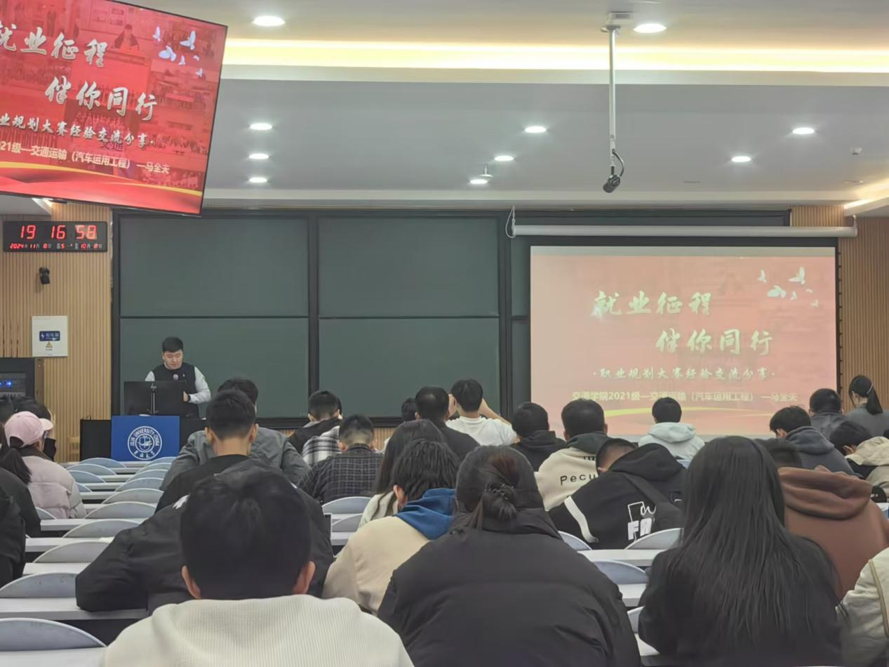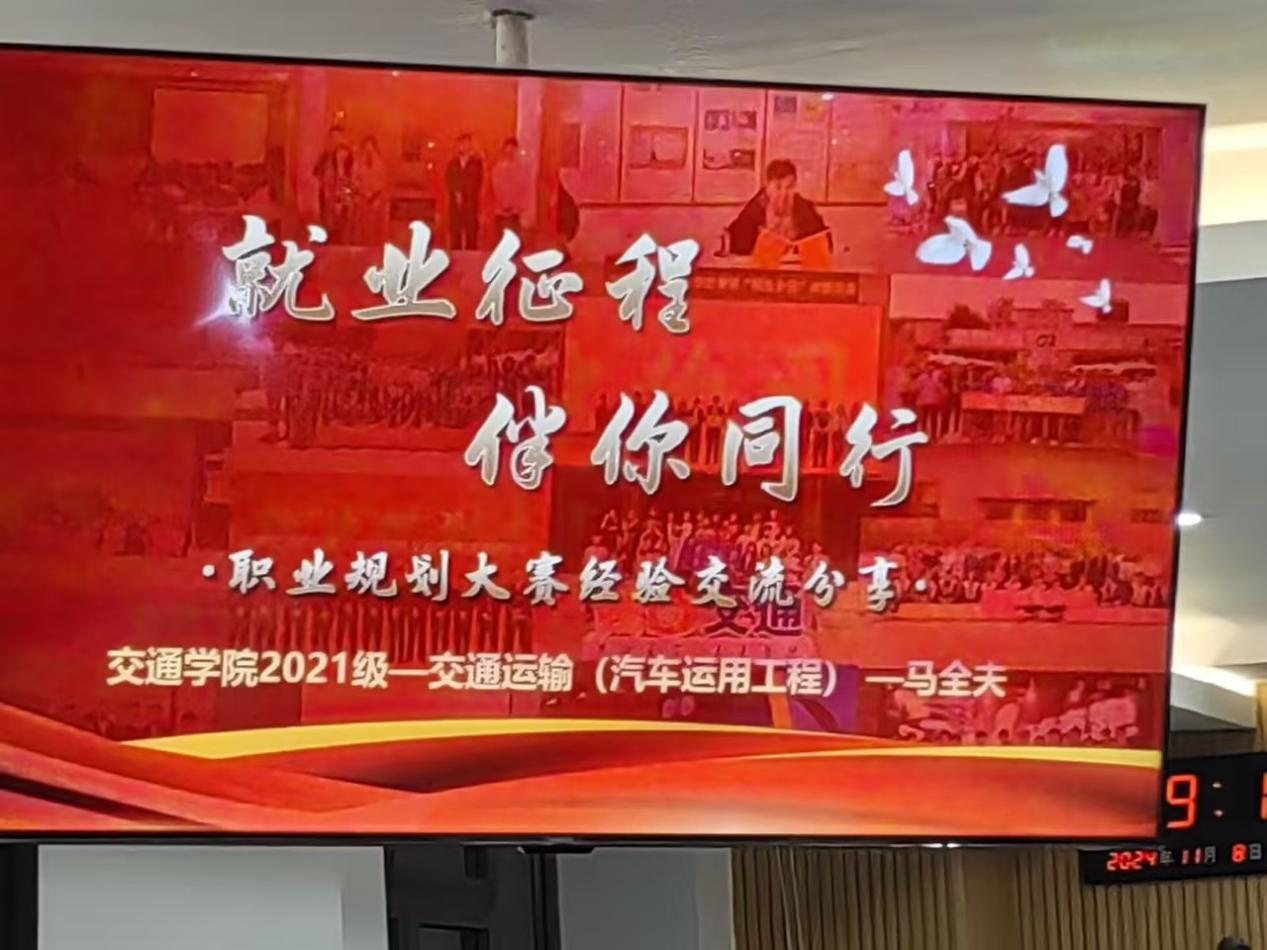 在南岭校区逸夫楼B114教室开展“就业征程,伴你同行”职业规划大赛朋辈经验分享活动。通过有此类竞赛经验的朋辈学生进行经验分享,为在校学生提供本次职业规划大赛准备方面的指导,同时帮助他们更好地规划未来,踏上成功的就业规划征程。