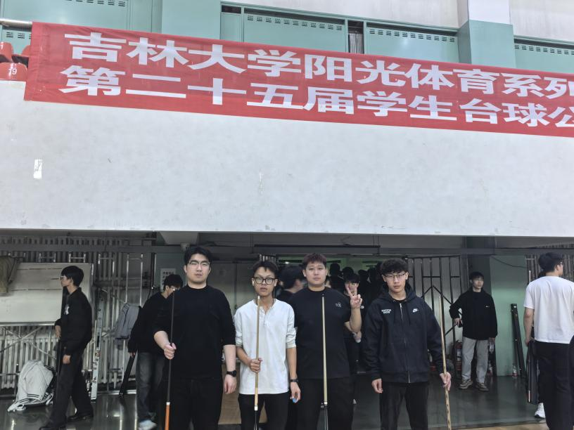 2025年3月26日,吉林大学阳光体育系列活动第二十五届学生台球公开赛在吉林大学南岭校区体育馆举办。在团体赛中,我院学子单绘军、李旭、陈関升、王彦沣紧密配合、齐心协力,取得了团体第五名的优异成绩。在个人赛中,我院单绘军和李旭两名学子从128名优秀的运动员中脱颖而出,分别夺得个人第三名和第五名的优异成绩。