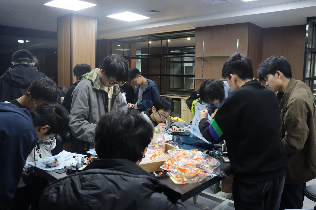 在工作人员的指导下,同学们逐步掌握了机械拼装的要领,在一次次的拆卸与重组中,许多创新构想应运而生。同学们或专注调试设备,或激烈讨论方案,工具与零件的碰撞声、电机转动的嗡鸣声此起彼伏,科技创新的热情充满了整个活动现场。通过彼此间的积极互动,大家不仅分享了对机械构造的理解,也锤炼了个人的动手能力与创新思维能力。