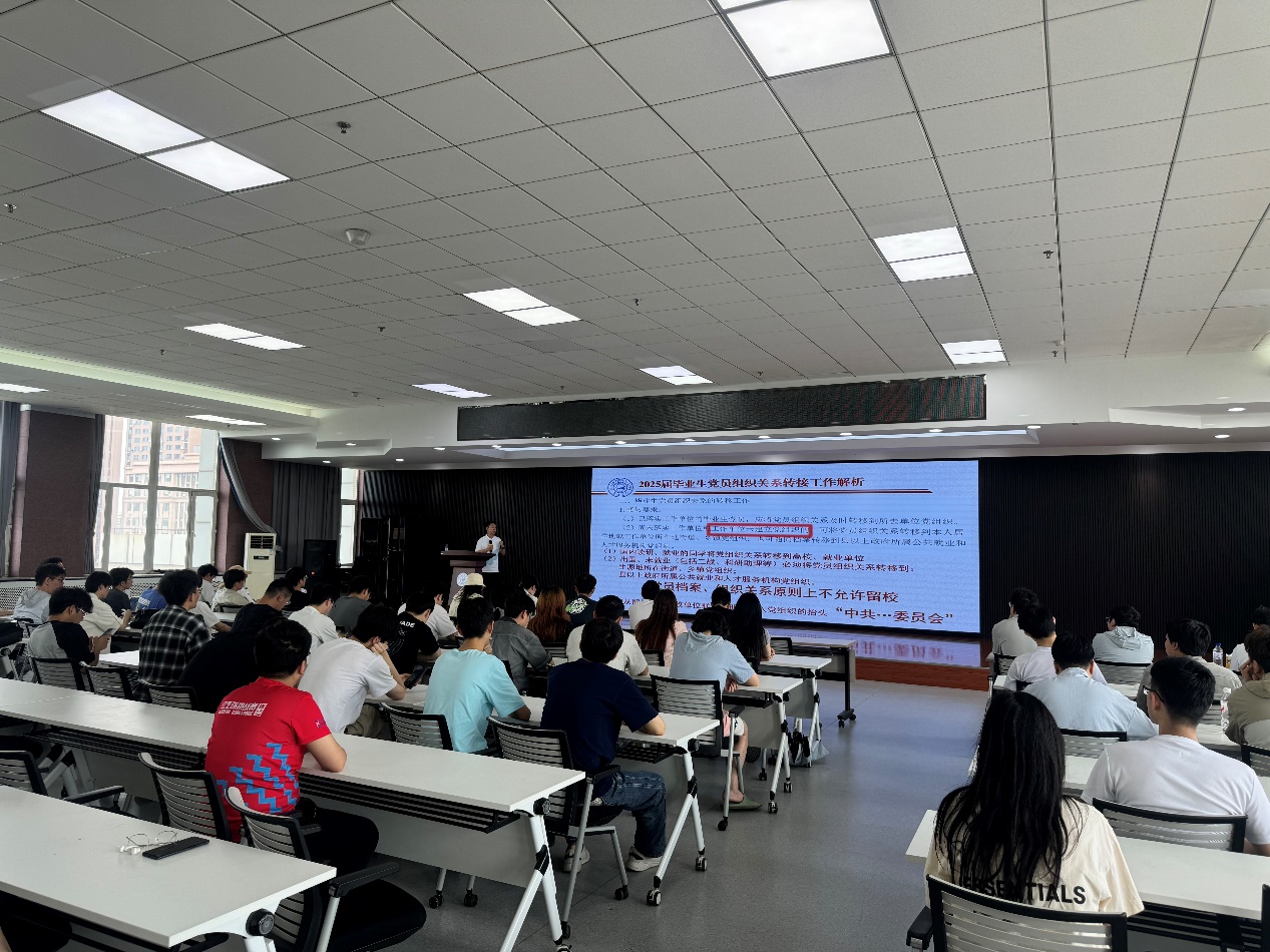 为切实做好学院2025届毕业生党员教育管理服务的“最后一公里”,确保毕业生党员组织关系转接工作规范、有序、顺畅进行,我院于6月13日在逸夫机械馆802召开了2025届毕业生党员组织关系转接工作专题会议。学院全体毕业生党员参会,本次会议由本科生辅导员范宝元主持。