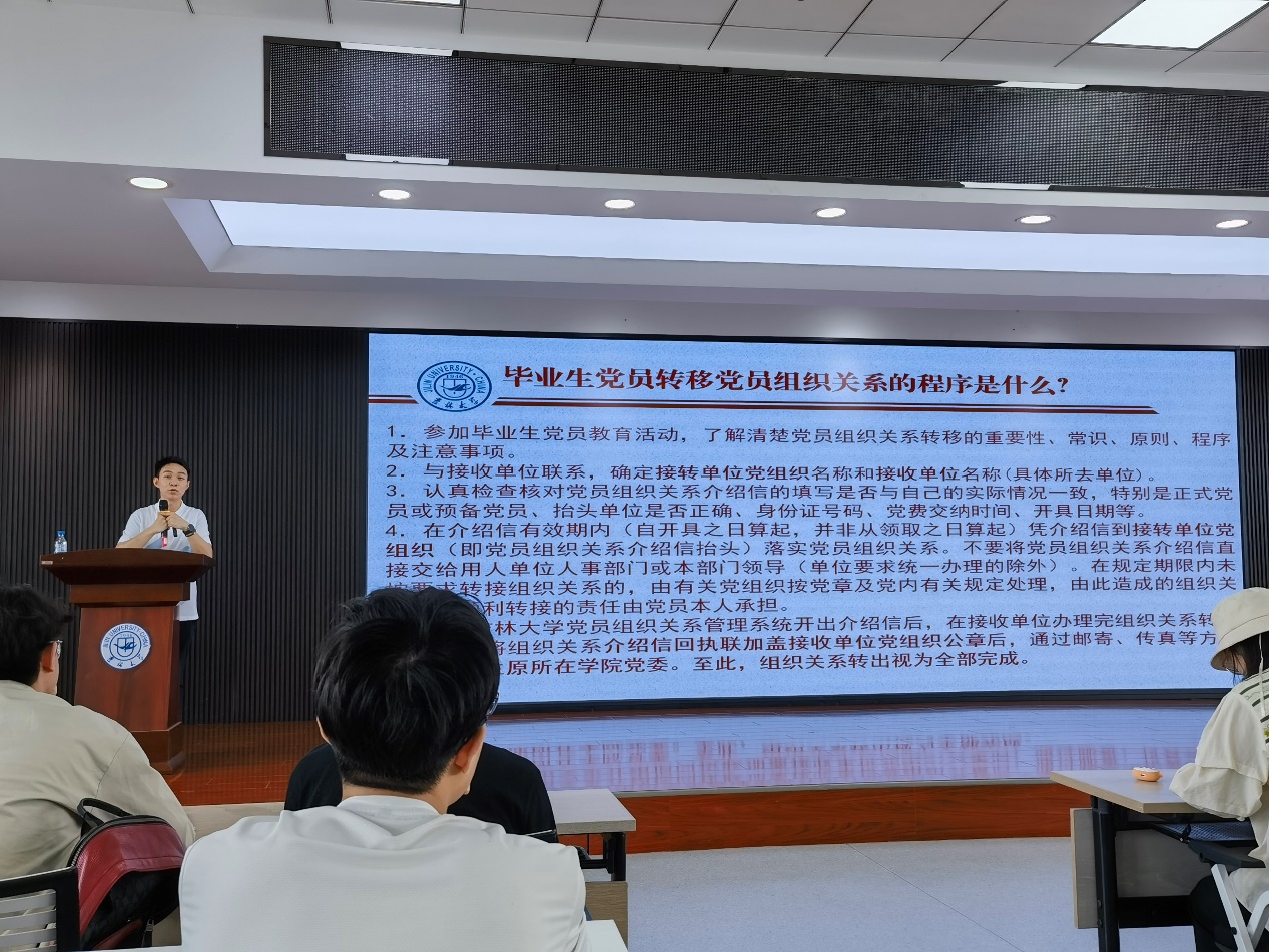 本次会议为我院2025届毕业生党员组织关系转接工作奠定了扎实基础。通过政策解读与具体案例相结合,确保毕业生党员顺利完成组织关系转接,在新的人生征程上继续书写党员的责任与荣光。