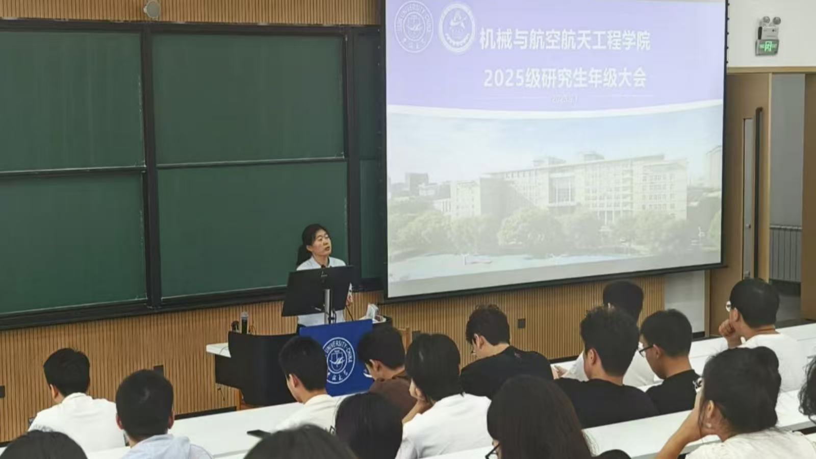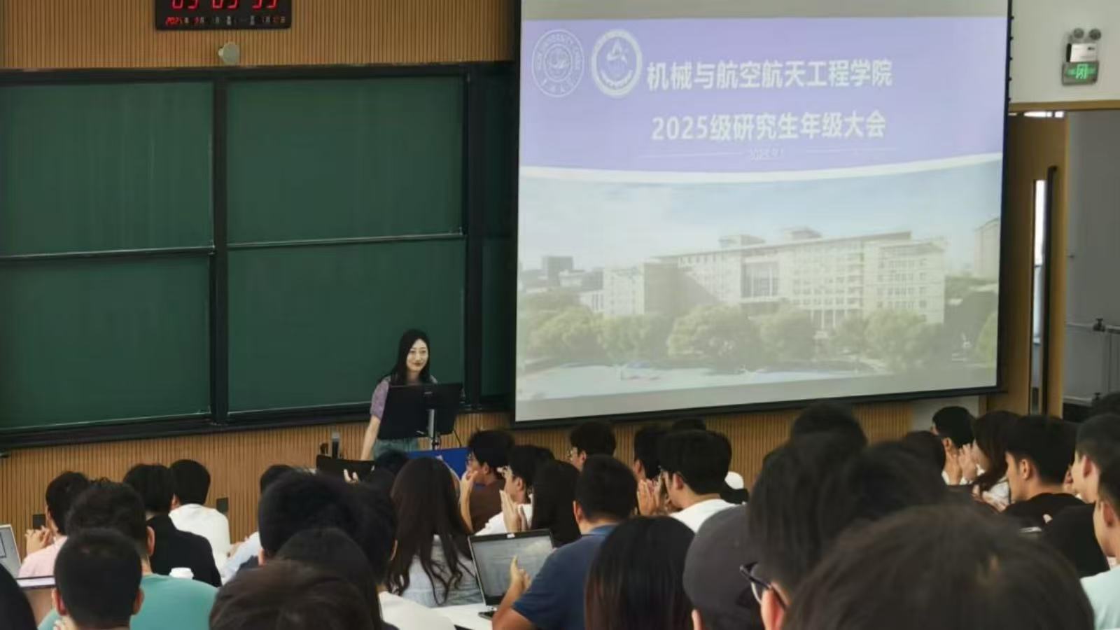 在逸夫楼A411召开2025级新生入学教育大会。大会由研究生辅导员曲艺主持,全体研究生新生参加。