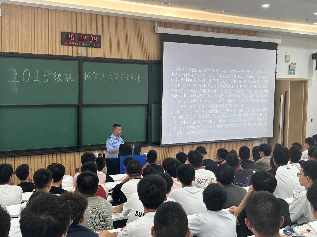 为进一步提升新生安全意识,学院邀请保卫处刘海江,田刚,姜涛,王中刚老师开展校园安全教育。四位老师以生动案例为切入点,围绕消防安全、用电安全、防盗安全、人身安全等方面进行深入浅出的讲解。同学们纷纷表示,通过此次活动深刻认识到校园安全的重要性,将在今后的学习生活中提高警惕,与学校共同营造安全、和谐的校园氛围。